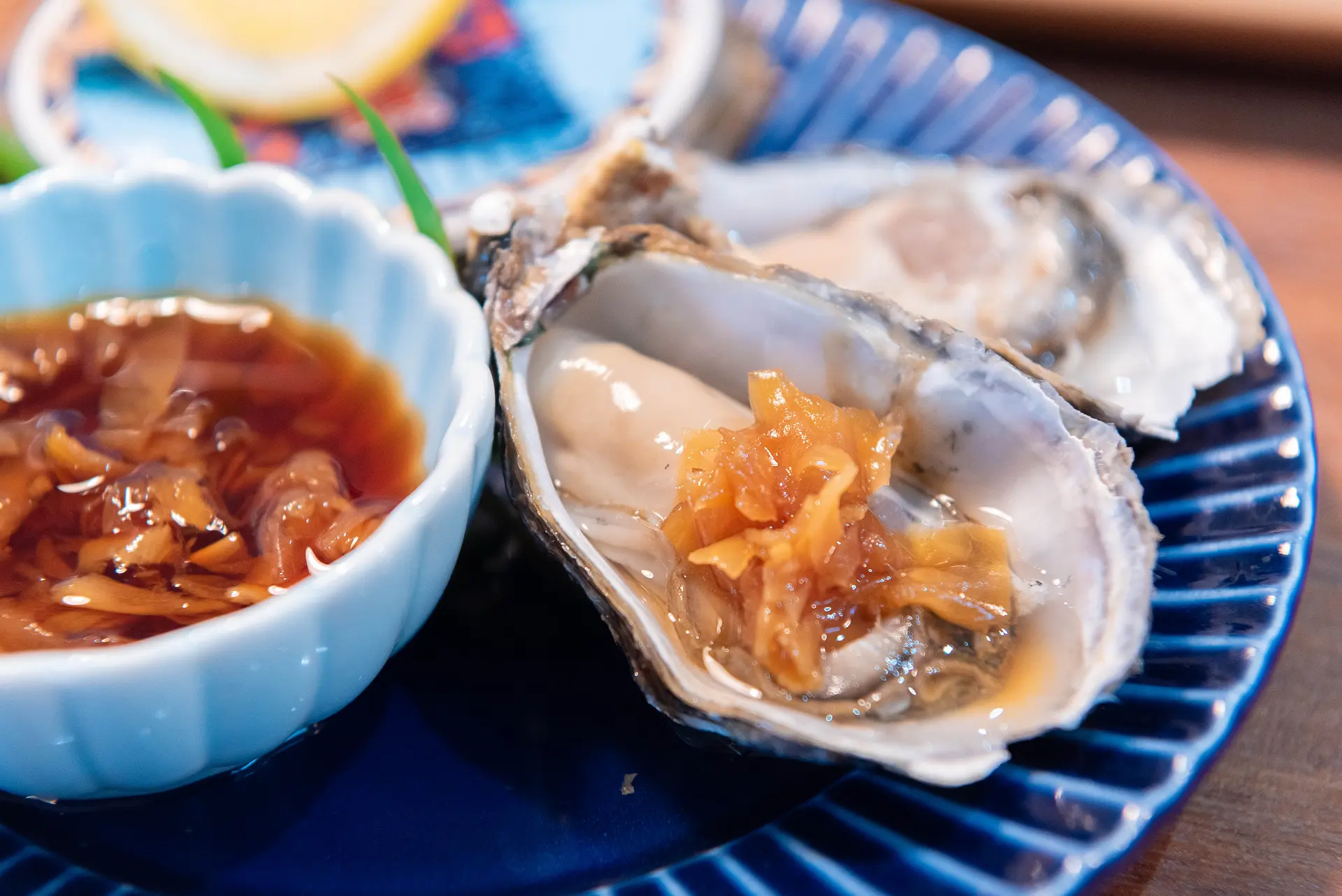 半生状態のためぷりっと感が増した牡蠣は、生とは異なる食感が楽しめ、うま味たっぷり。
