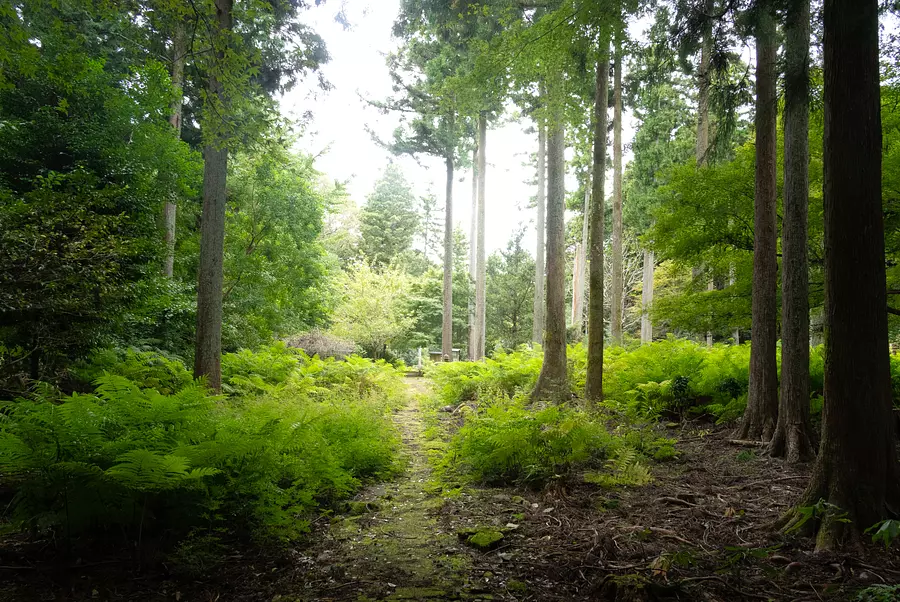 突如現れるシダに囲まれた旧国束寺跡は、どこか幻想的な雰囲気に包まれていました。