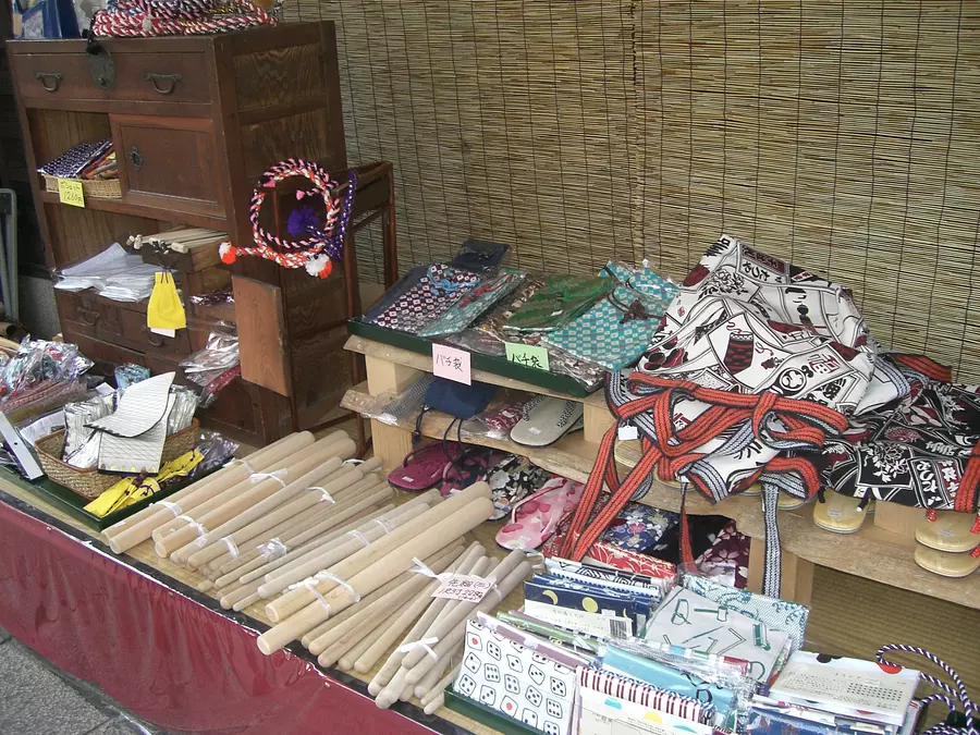 太鼓を中心とした鳴り物の玩具や、お祭り関連のものを取り扱う屋台が出店します。