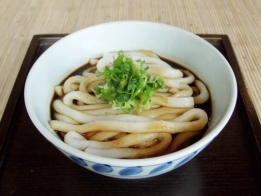 江戸時代のおかげ参りを追体験できるような道中のうどんやの佇まいの伊勢うどん店「ふくすけ」。出汁の効いた溜まり醤油がベースの真っ黒のたれを、太くやわらかい麺によくからめて食べるのが正しい食べ方です。