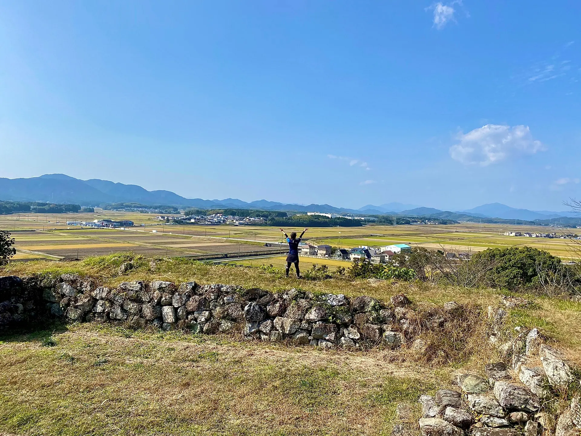 天守跡に立つと、下から吹き上げてくる心地良い風を感じながら、広大な景色を見渡すことができました!三重県指定文化財(史跡)・続日本100名城に指定されている名城で、春は桜の名所、冬は石垣などの城跡内のライトアップが実施されています。