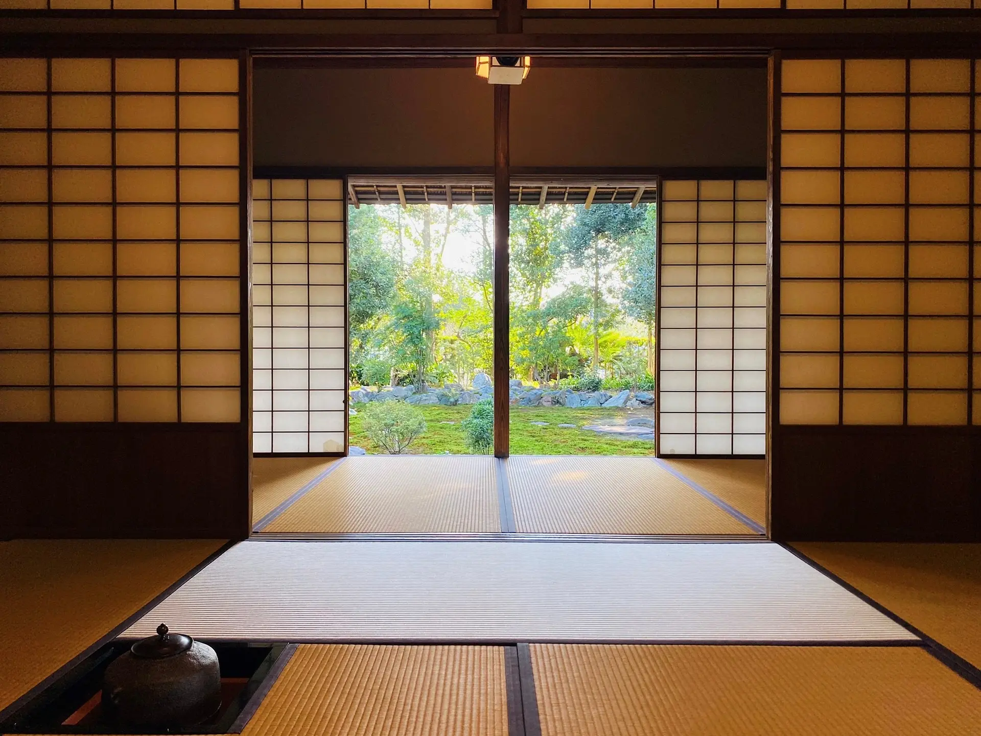 茶室からは、美しくもわびさびを感じられる庭園を眺めることができます。