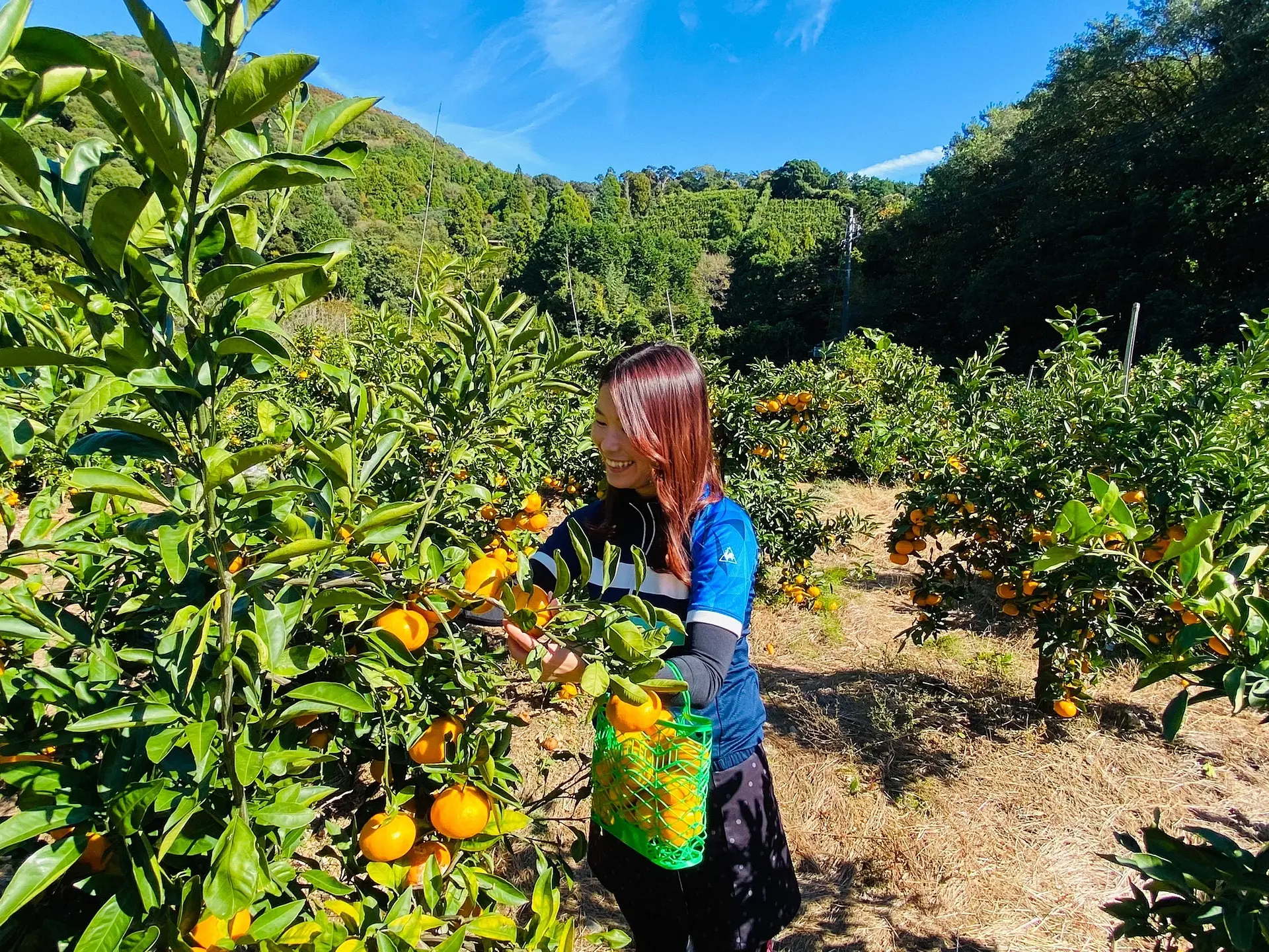 みかん狩りを実施する畑は、施設の側にあります。また、みかん畑へ向かう道は舗装されていたり、みかんが実る位置も低いため、子どもや車椅子の方も楽しめるのが特徴です。