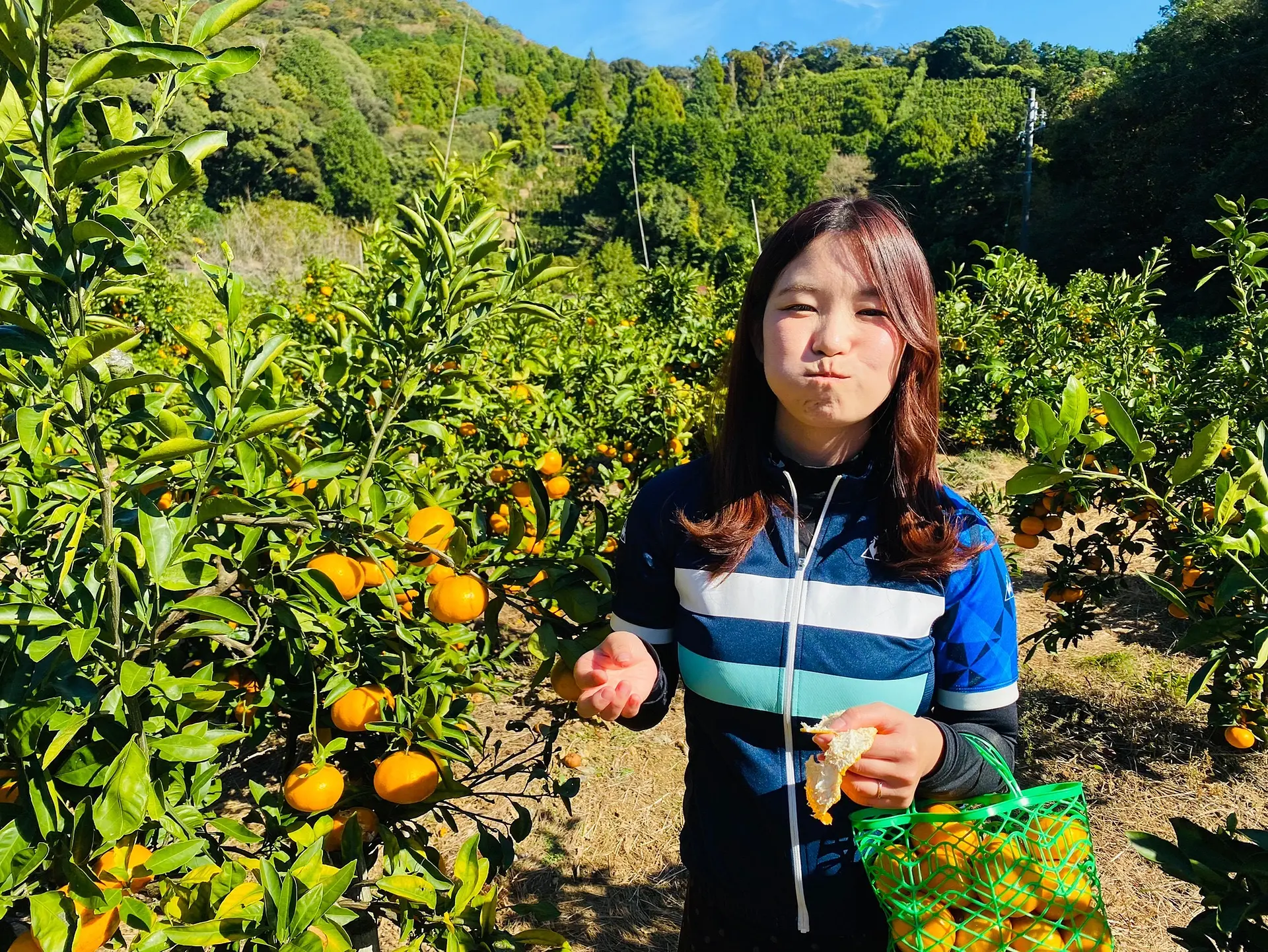 皮を剥いた瞬間、みかんの爽やかな香りがパッと広がります。思わず口いっぱいに頬張ってしまいました!太陽をたくさん浴びたみかんは、味が濃くて、とても甘くて美味しかったです!