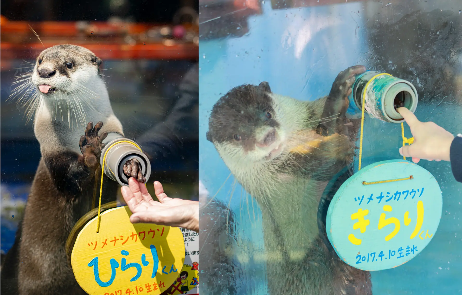 ツメナシカワウソの「ひらりくん」と「きらりくん」と触れ合えるイベントが「ツメナシカワウソと握手」。