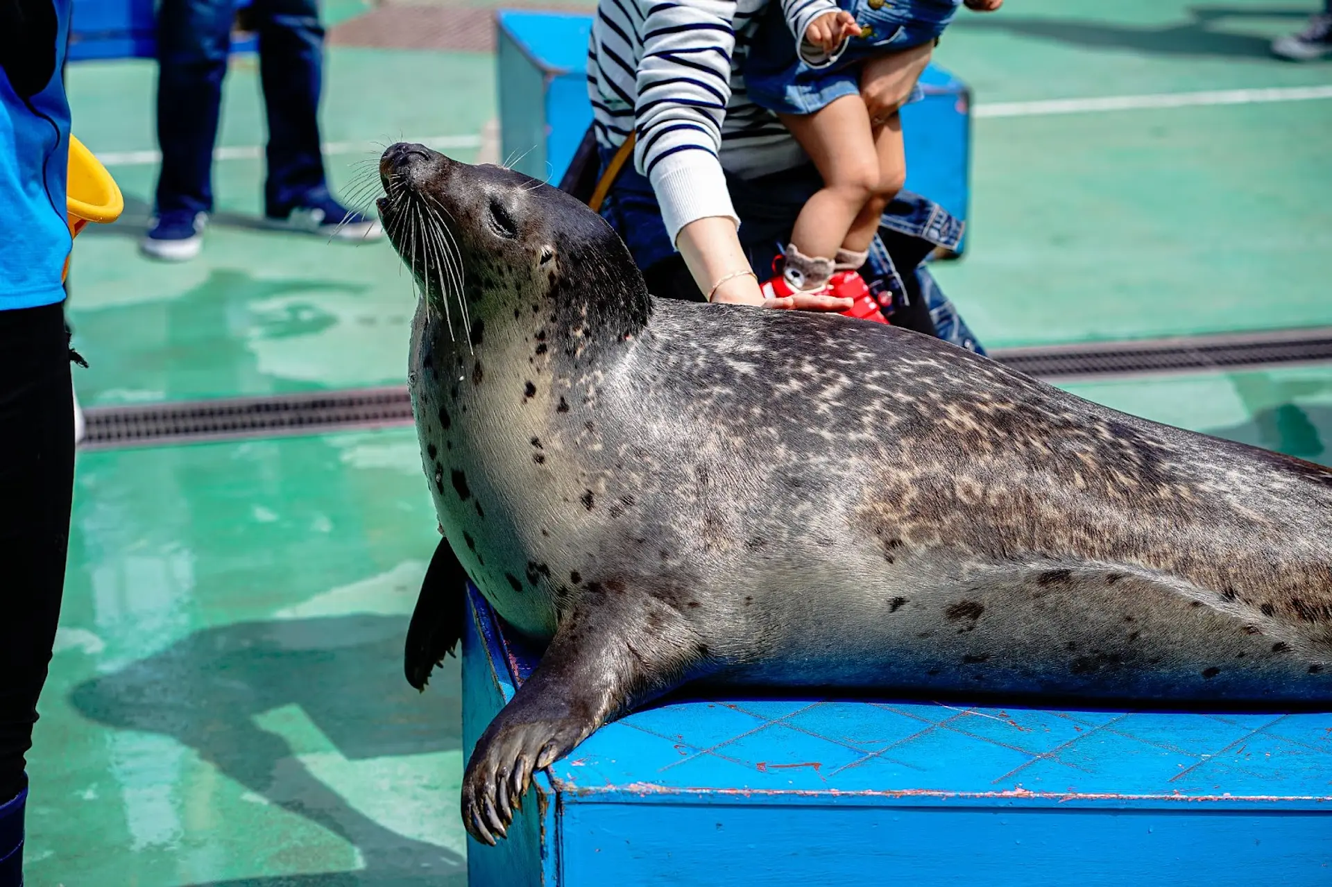 館内ではセイウチやカワウソ、アザラシなどの海獣に触ってふれあえる「距離感ゼロ」の体験を楽しめます。