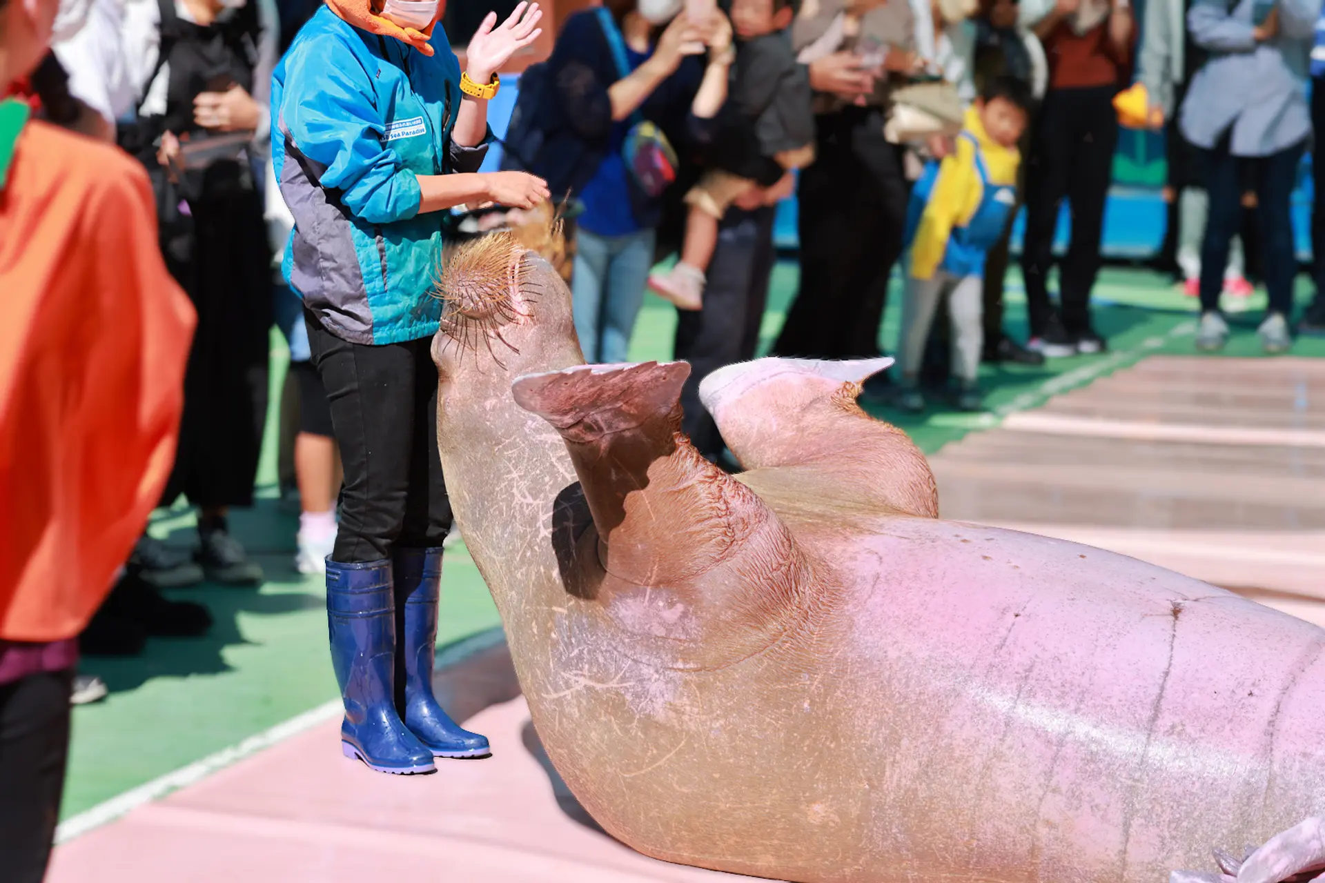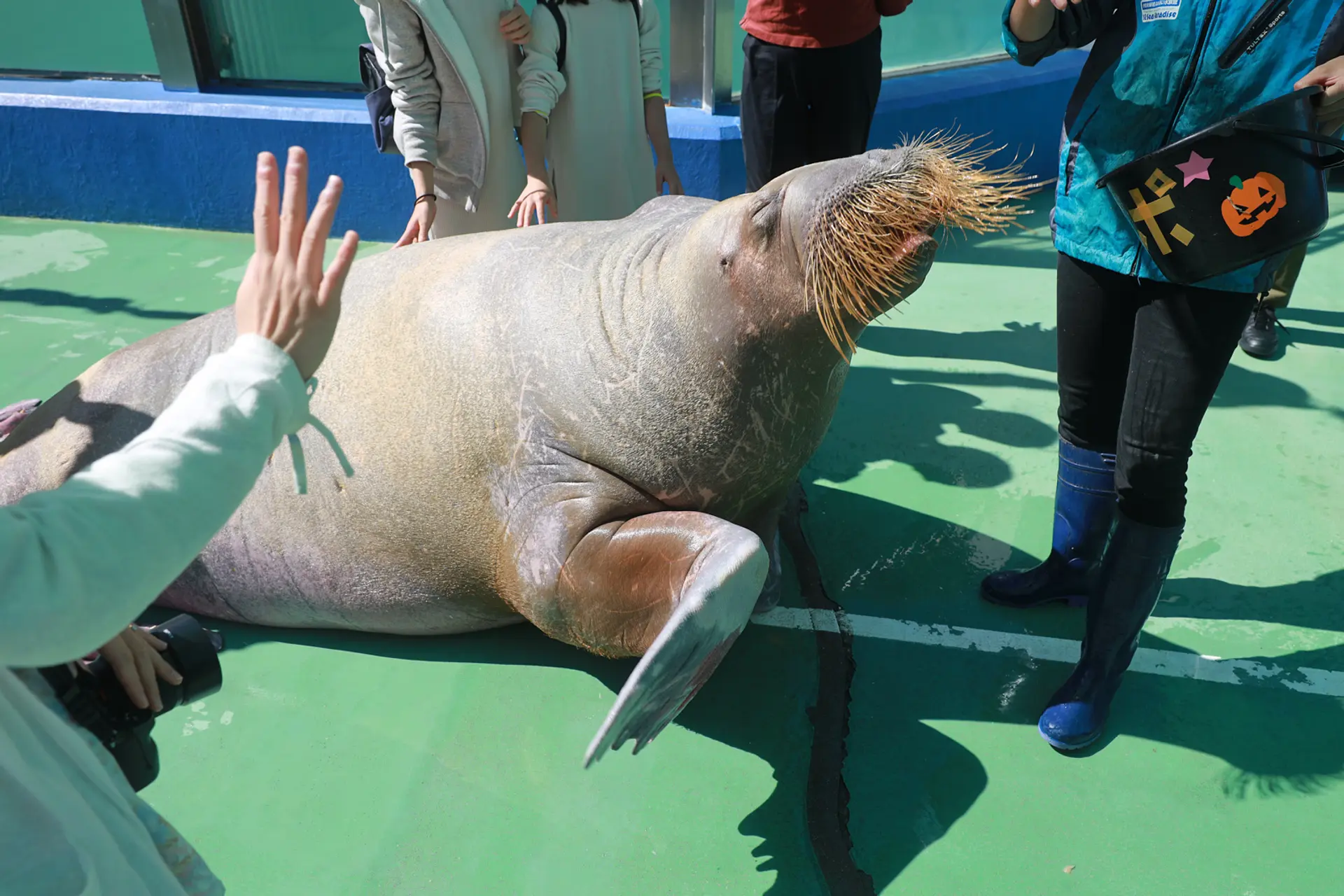館内の「海獣広場」でセイウチと触れ合えるイベントが「セイウチのお散歩タイム」。