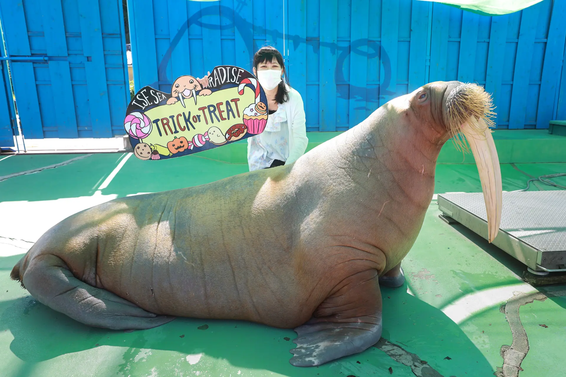 「セイウチハイポーズ」はその名の通り、セイウチと記念撮影できるイベントで、セイウチのお散歩タイムが終わったあとに実施されます。