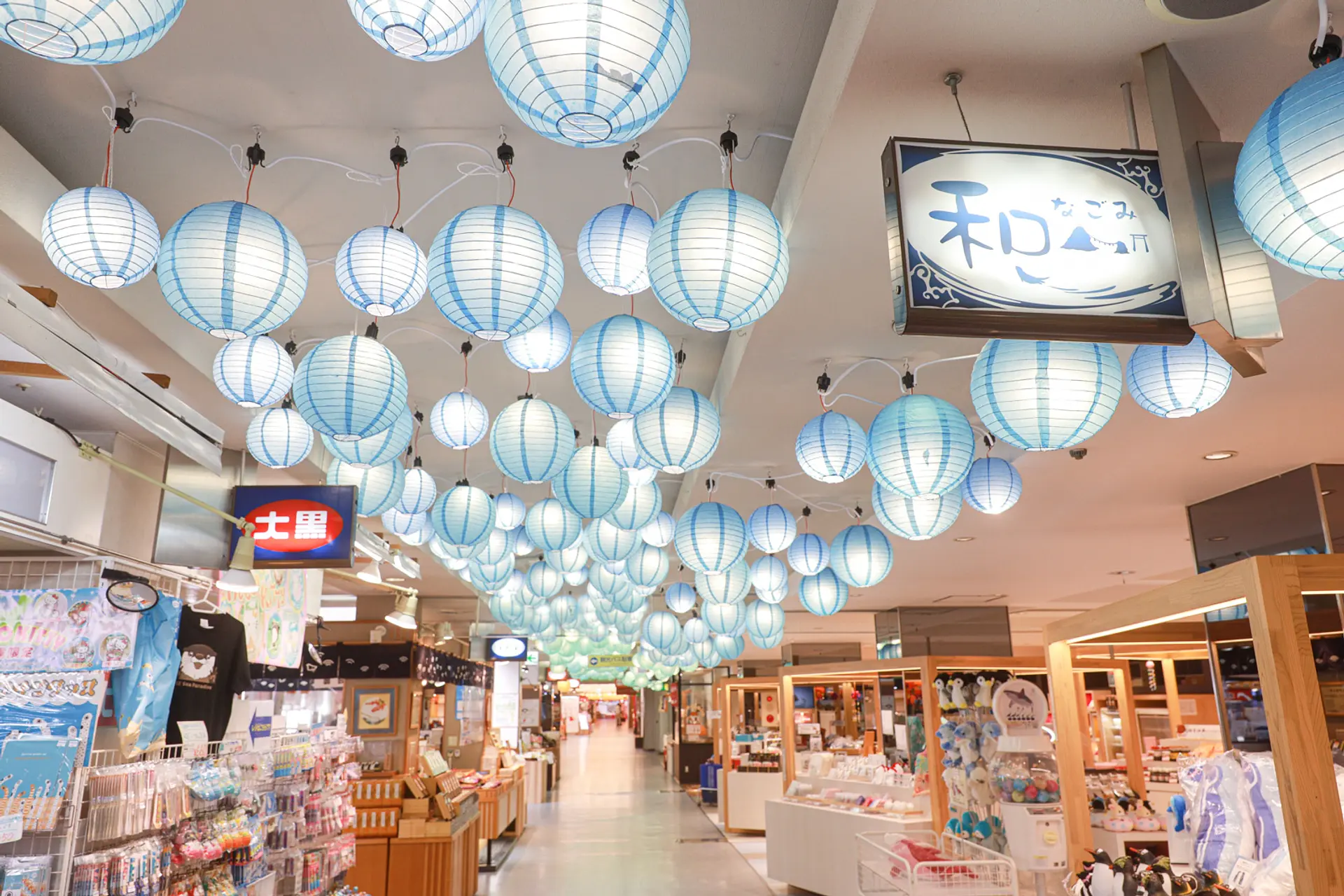 伊勢シーパラダイスからそのまま繋がる約180m のストリートに、お土産店や飲食店、体験施設などがズラリと続いていて、館内を歩いて回れます。
