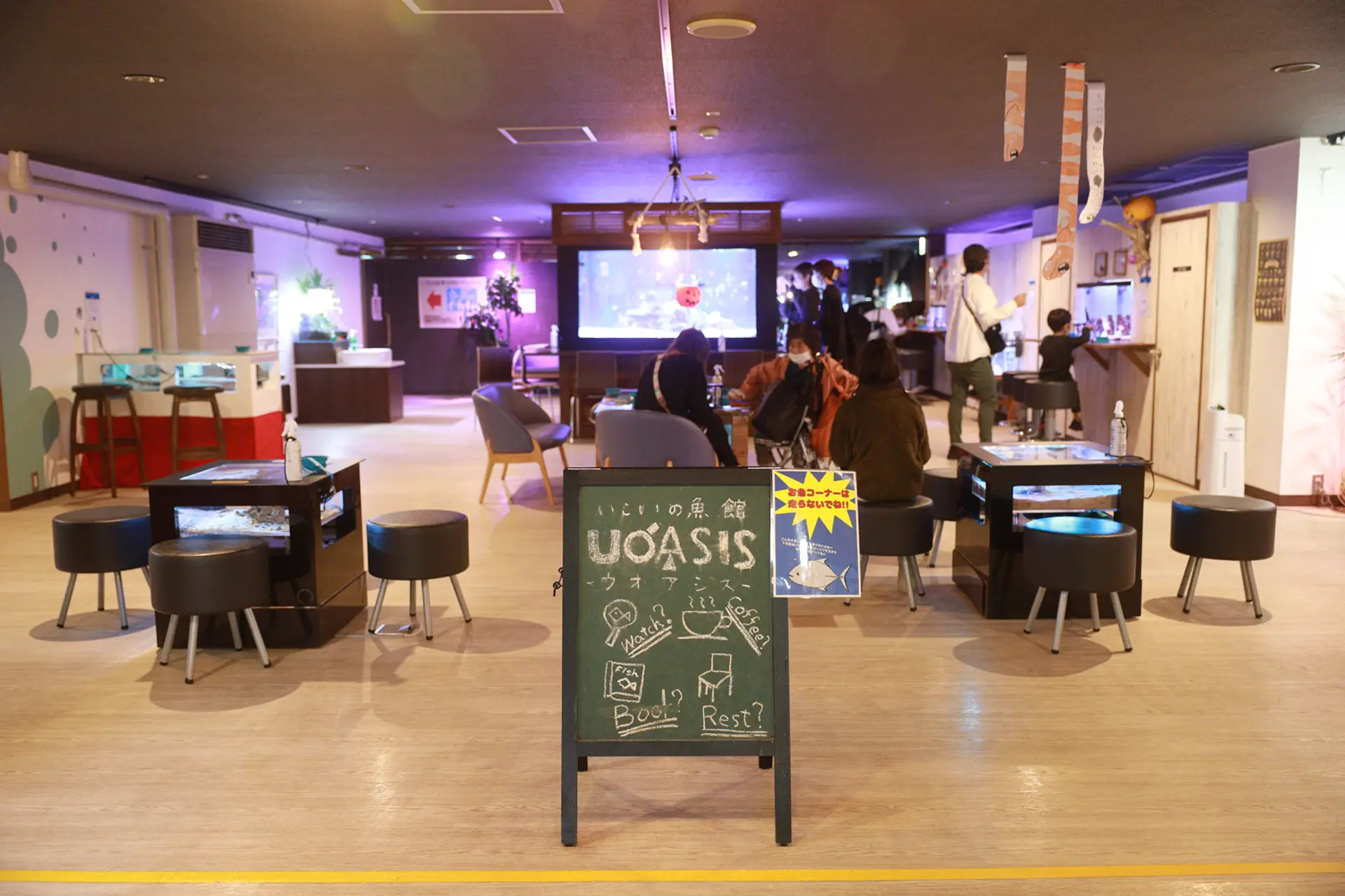 椅子に座りながら水槽を鑑賞できる「いこいの魚館 UOASIS-ウオアシス-」も2020年に新設されたエリア。
