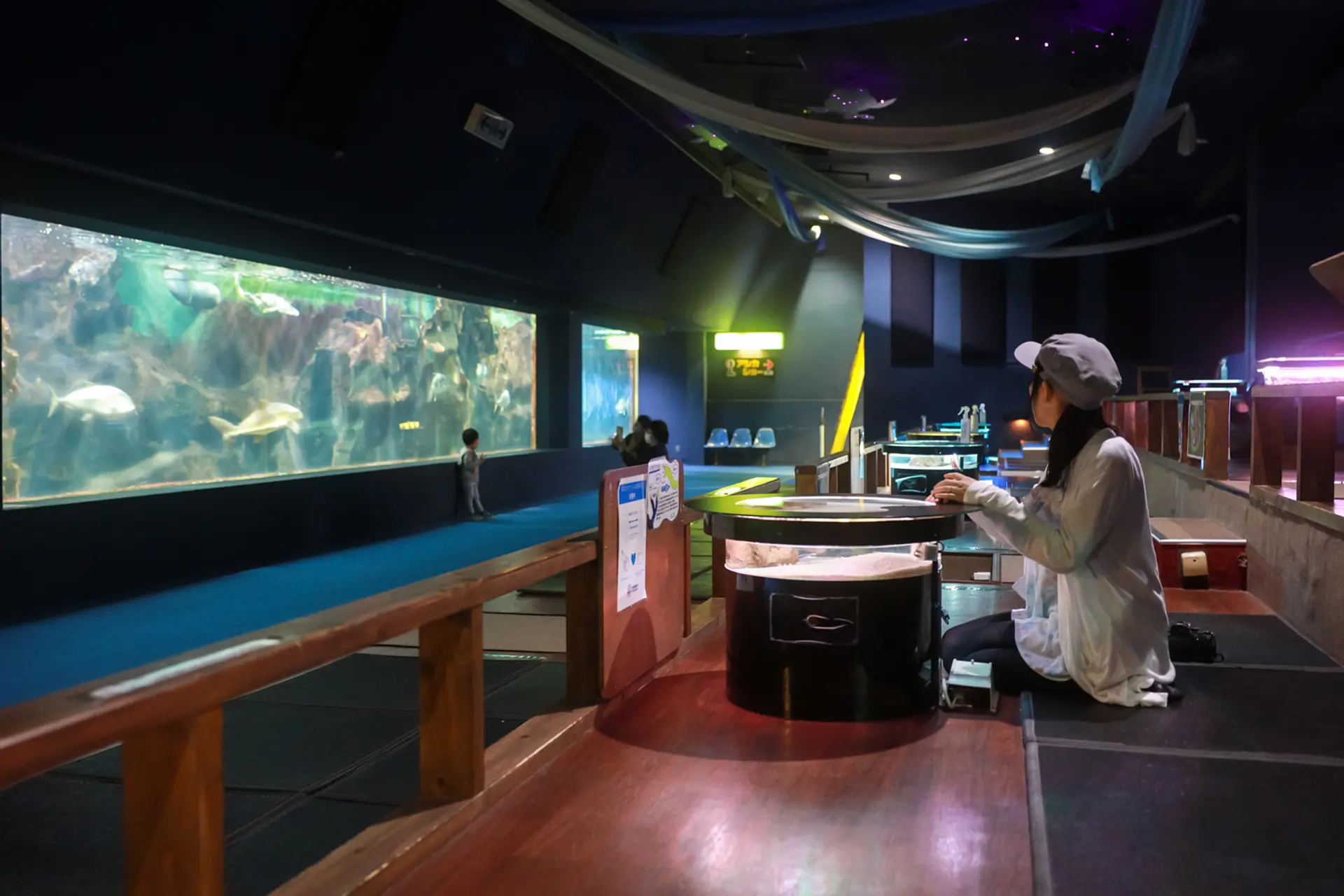 大きな回遊水槽が目の前にあり、まるで海底にいるような気分を味わえますよ。