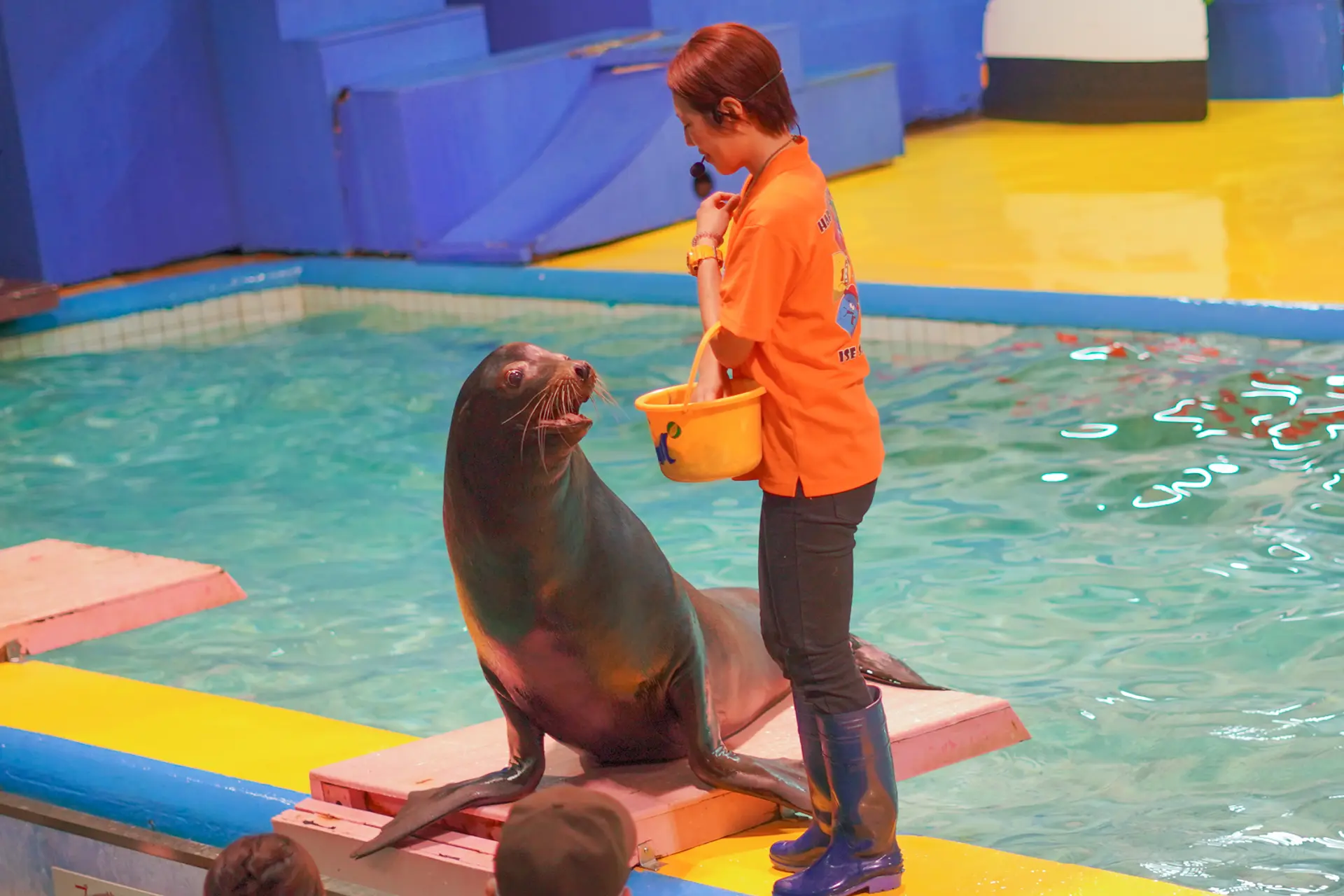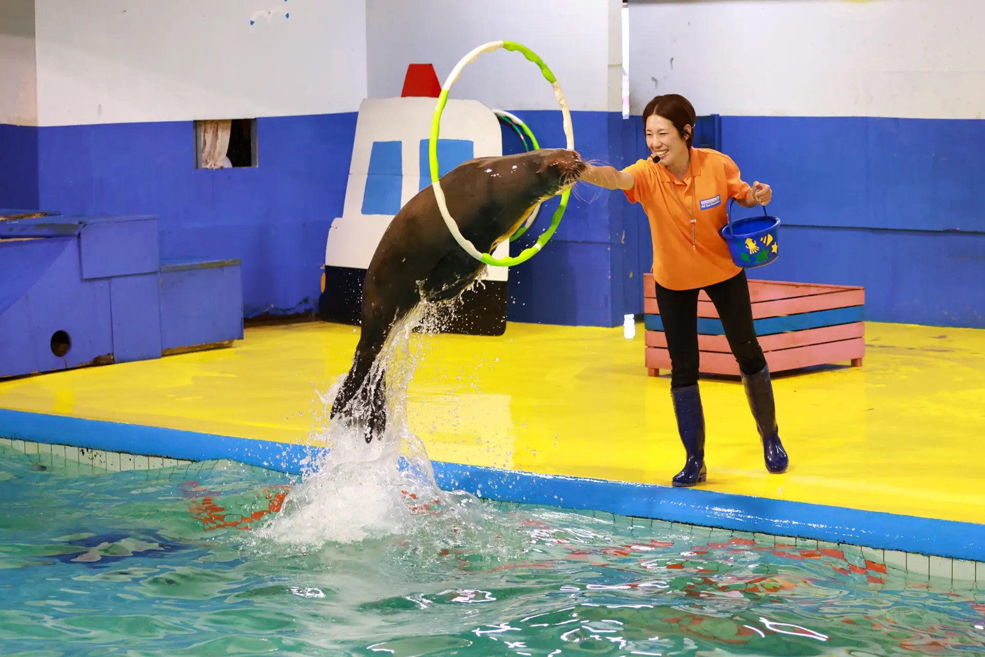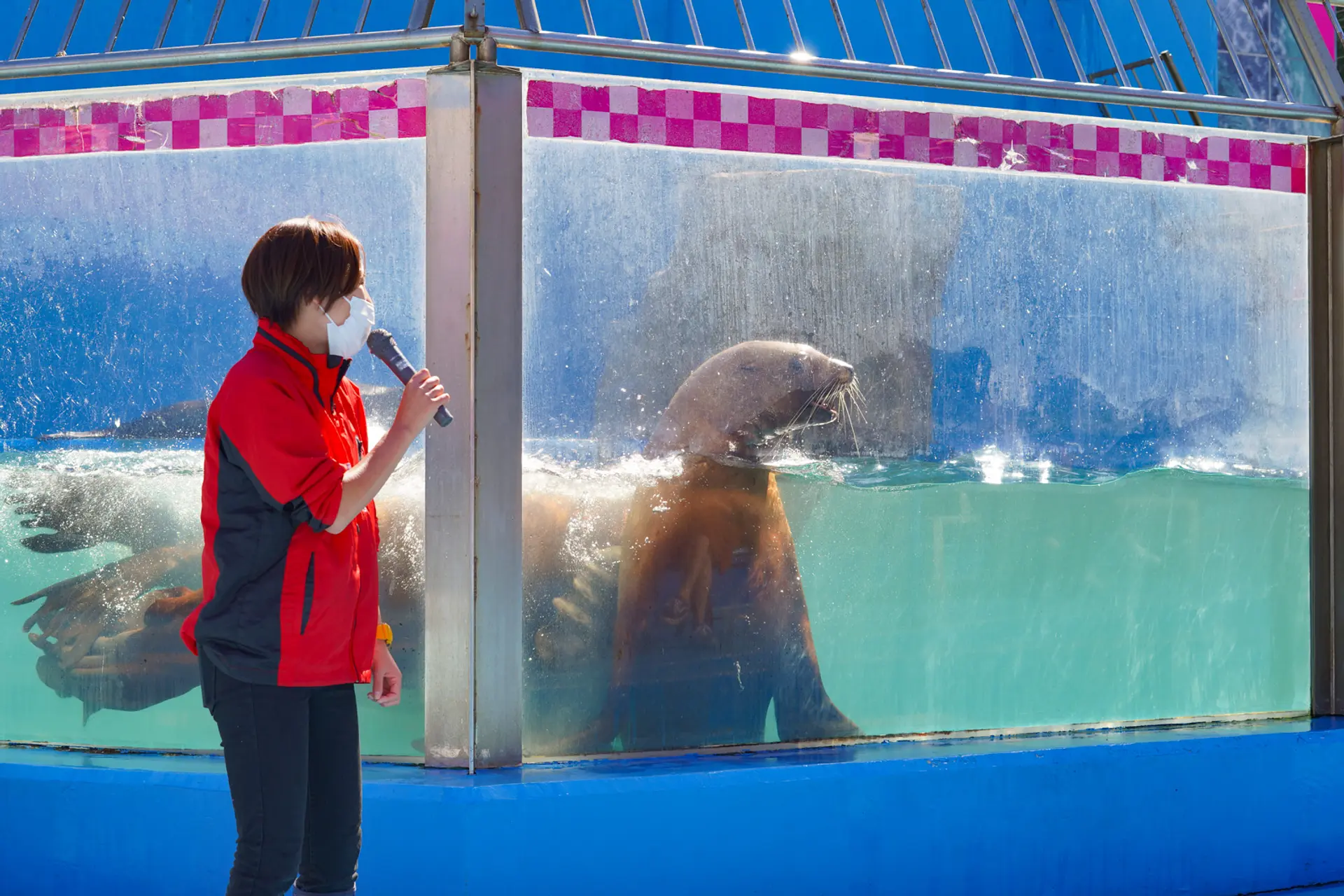 アシカショーはコミカルな要素を交えたパフォーマンスが繰り広げられ、アシカたちの愛くるしい表情や仕草に思わずキュンとするかも♪