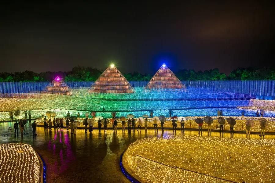 2004年から開催し、今年で20回目の節目を迎えた「なばなの里イルミネーション」。2023-2024のテーマは「黄金のピラミッド」。世界遺産にも登録されているエジプトのピラミッドを舞台に、黄金のピラミッド・ナイルの繁栄・エジプト神話の3つのストーリーを光と音でダイナミックに演出します!