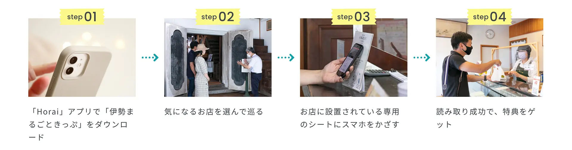 「伊勢まるごときっぷ」はスマートフォンアプリHoraiを活用して使えるデジタルきっぷです。伊勢神宮だけでなく、伊勢のディープな観光スポットや魅力を お得にたくさん楽しむことができます。