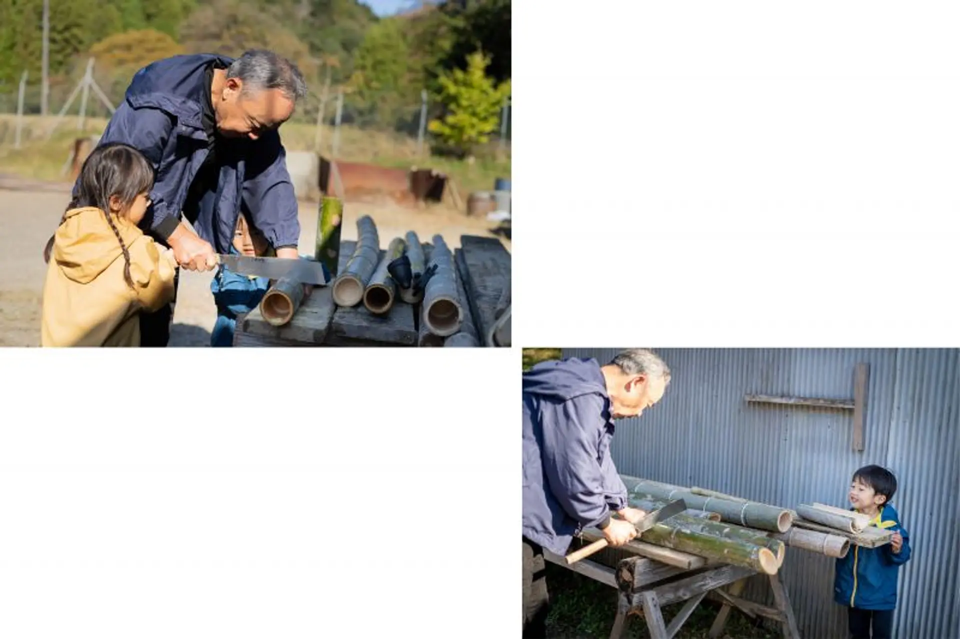 今回は、大紀町の山で育つ立派な竹を利用して夜に煌めく竹あかりづくりに挑戦!竹あかりづくりに挑戦する人の年齢に合わせて、作業を分担しながら進めていきます。