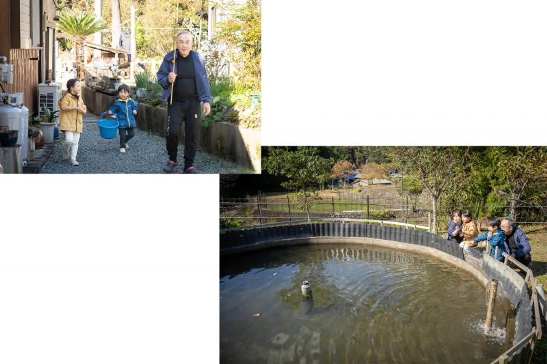 続いて、あまご釣りを体験するために庭の釣り堀へ移動!