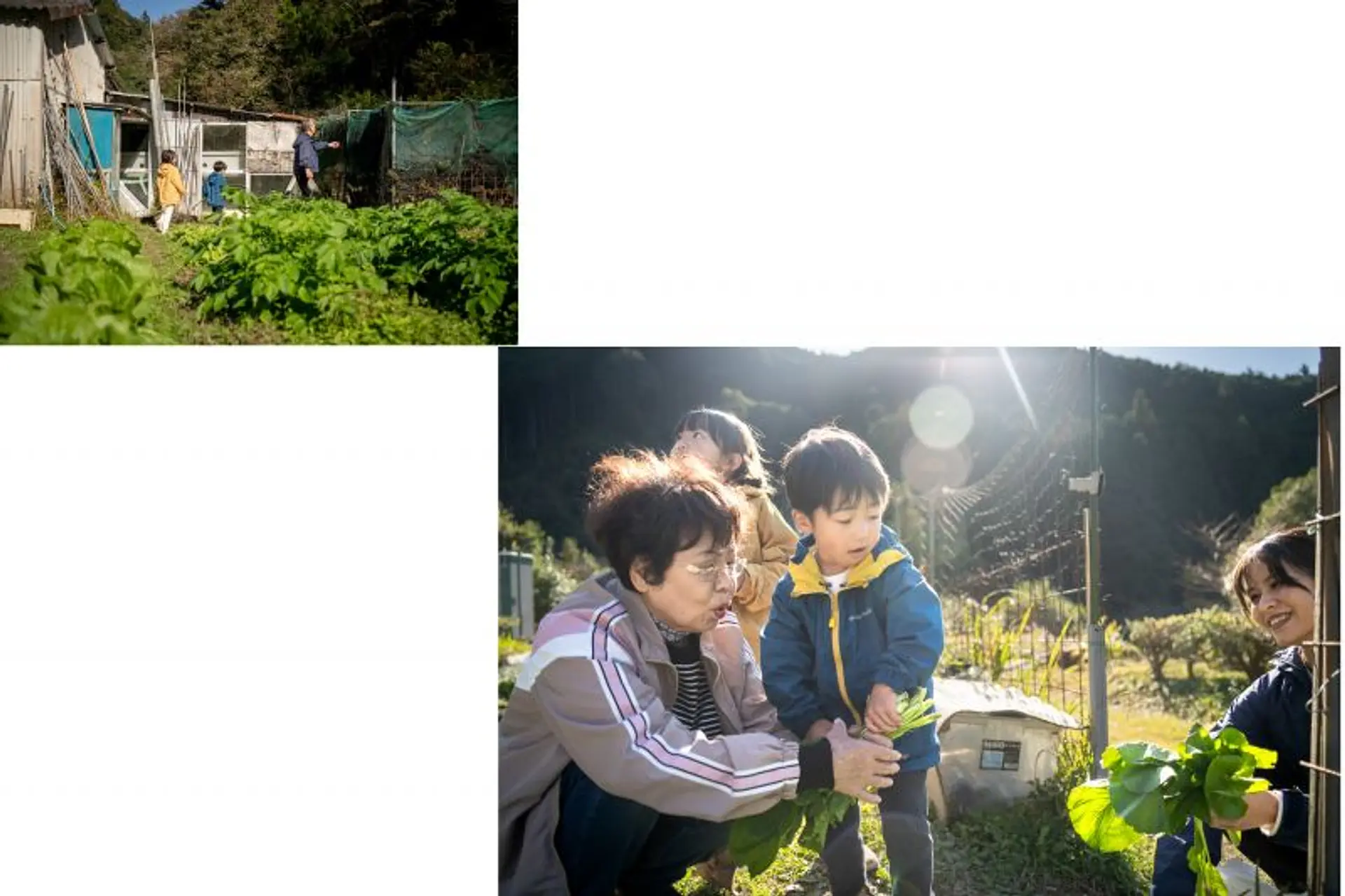 四季折々の野菜が栽培されており、その季節ごとの野菜を収穫することができます。取材時は秋ということもあり、畑のなかでも収穫期を迎えた小松菜や椎茸の収穫を体験!