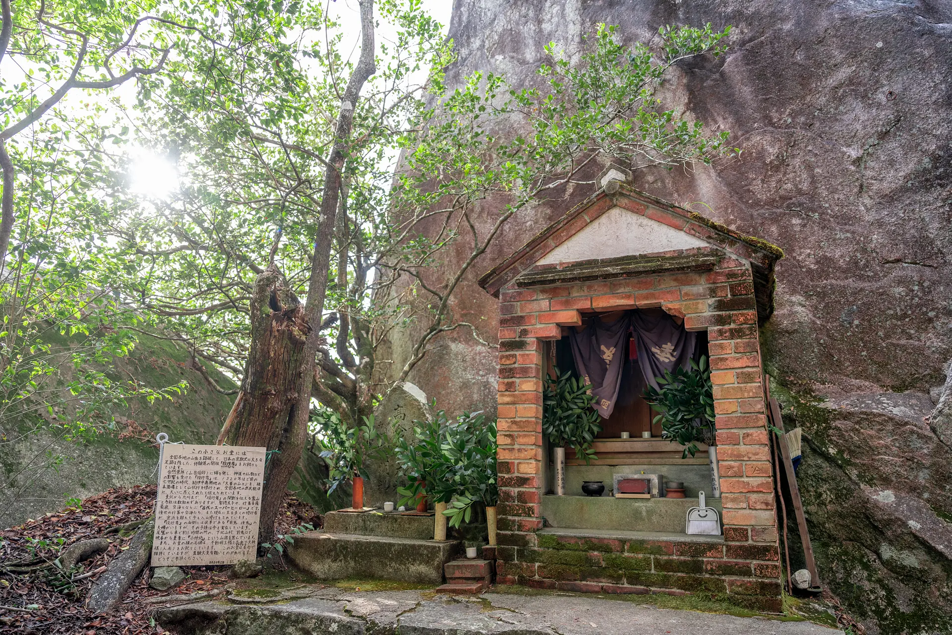 山岳信仰にまつわる歴史が深い天狗倉山の頂上に、現在も残る役行者(えんのぎょうじゃ)の祠。