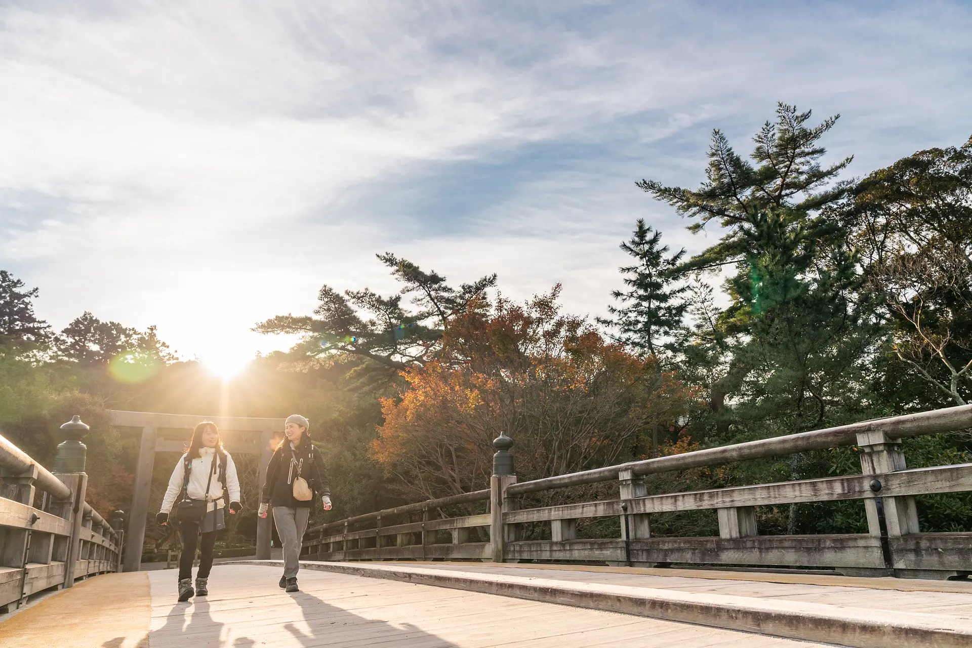 旅の始まりは、伊勢神宮の鳥居から昇る朝日