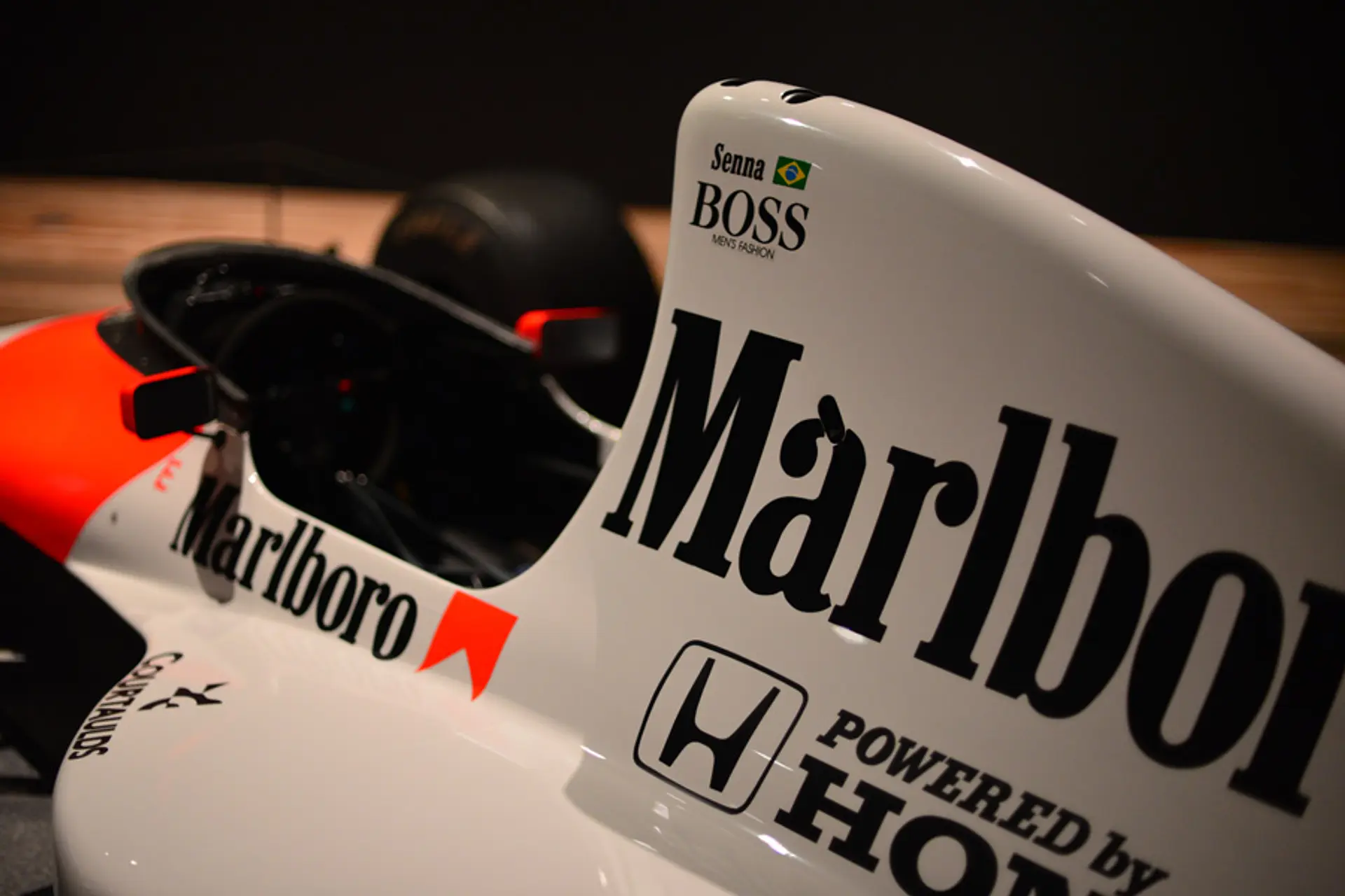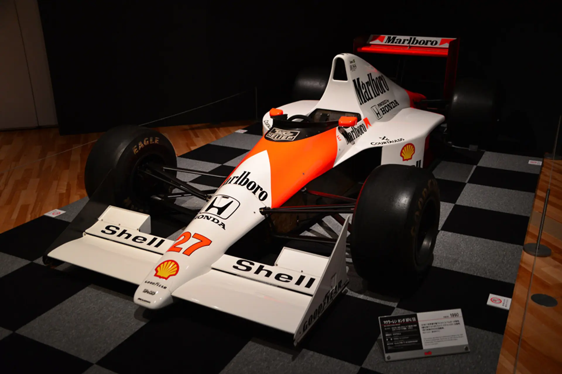 こちらはF1ブームが巻き起こっていた時期のマシンで、皆さんもこの形に見覚えがあるのでは?1枚目の写真と同じくMcLaren MP4/5B、マルボロカラーが懐かしいです。この時期のホンダエンジンは他を寄せ付けない圧倒的な強さがありました。ドライバーは言わずものがな、アイルトン・セナ。