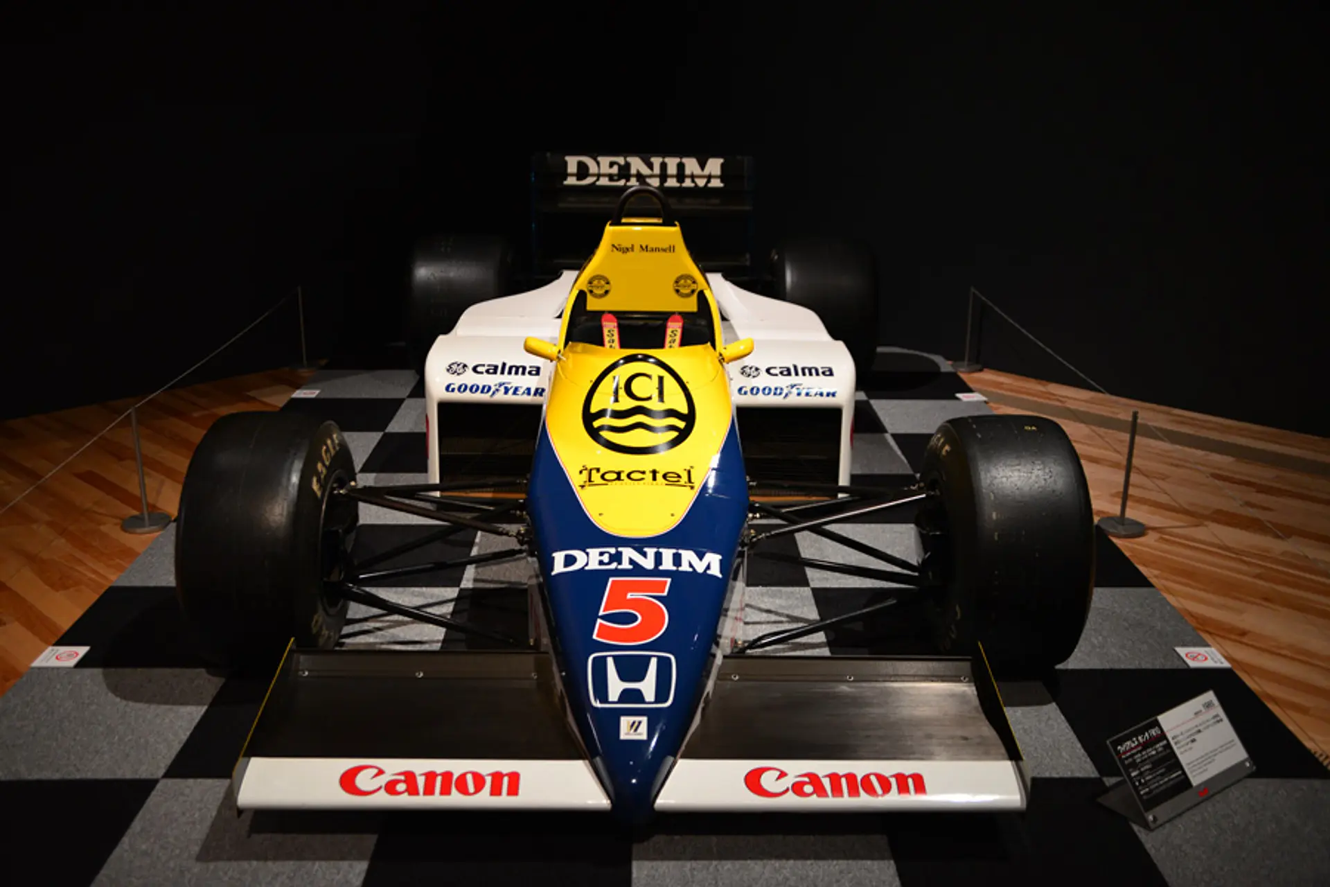 こちらは1985年のマシン、ウィリアムズホンダ FW10です。ターボエンジンが搭載されていた時代のマシン、この時代はとてつもない馬力(特に予選)を出していました。ヒゲのドライバー、ナイジェル・マンセルが乗っていたことでも有名です。