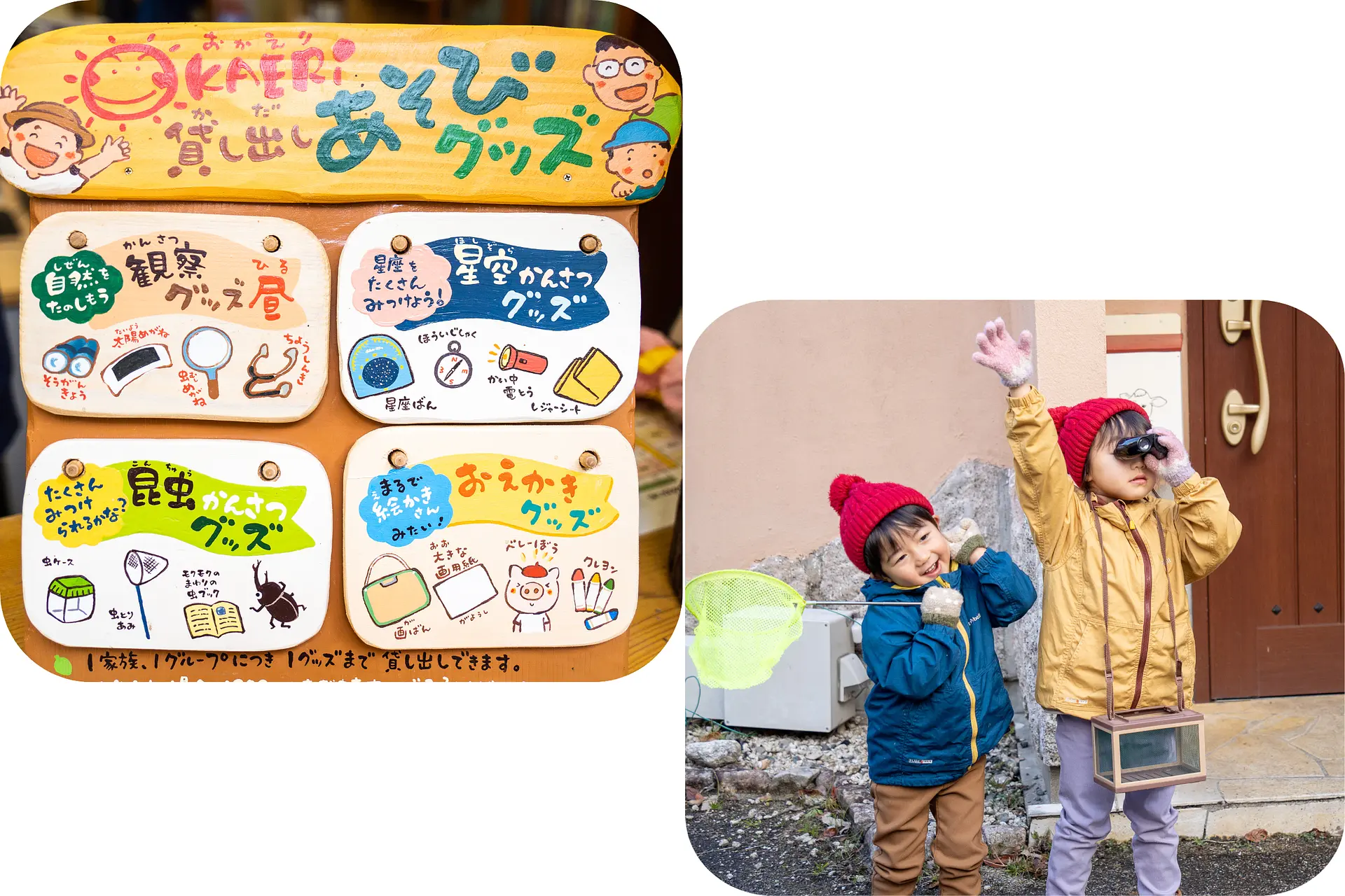 竹馬・輪投げ・縄跳びを楽しむことができる「あそびひろば」。