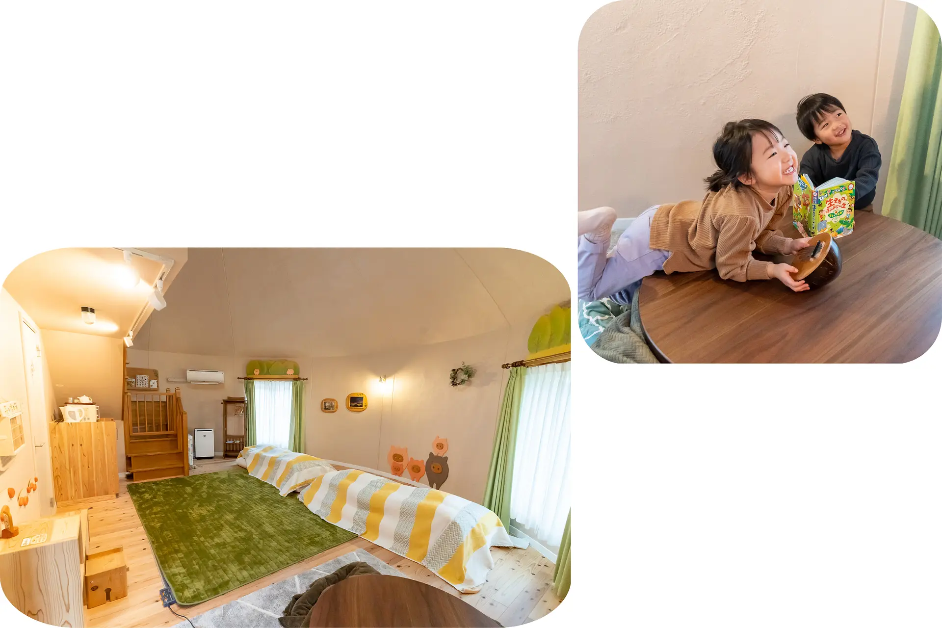 大自然に包まれたファーム内で宿泊できる人気の「OKAERiビレッジ」では2022年に新キッズコテージも登場!