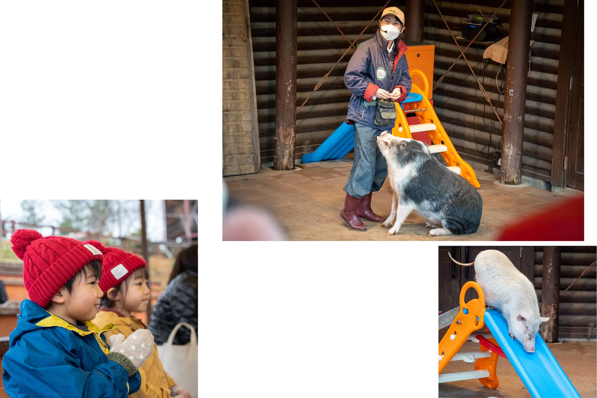 時には失敗しちゃうこともありましたが、愛嬌あるミニブタさんの挑戦の連続に子どもたちも手を叩いて応援していました。