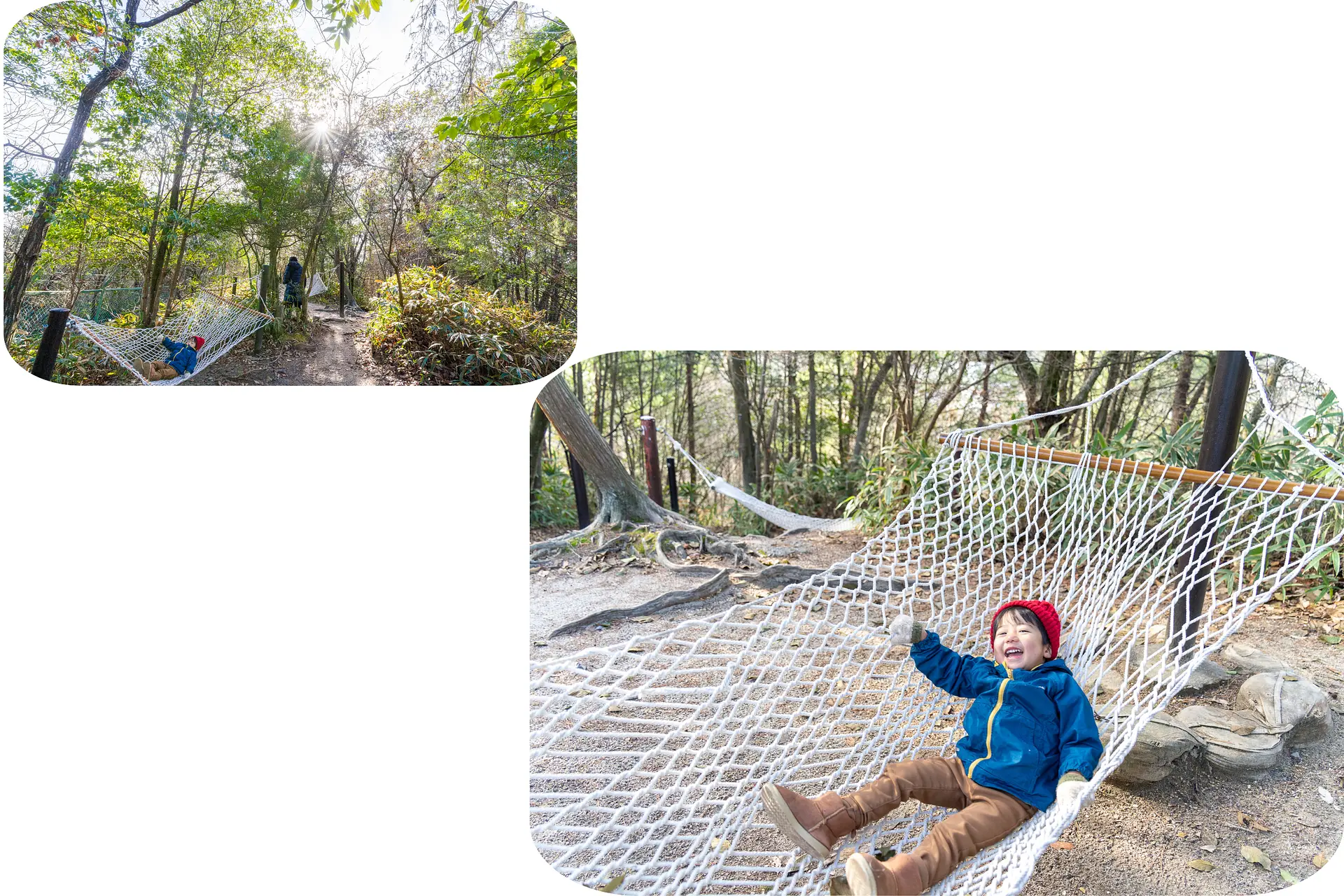 モクモクファームの隠れた人気スポットが「ハンモックの森」。