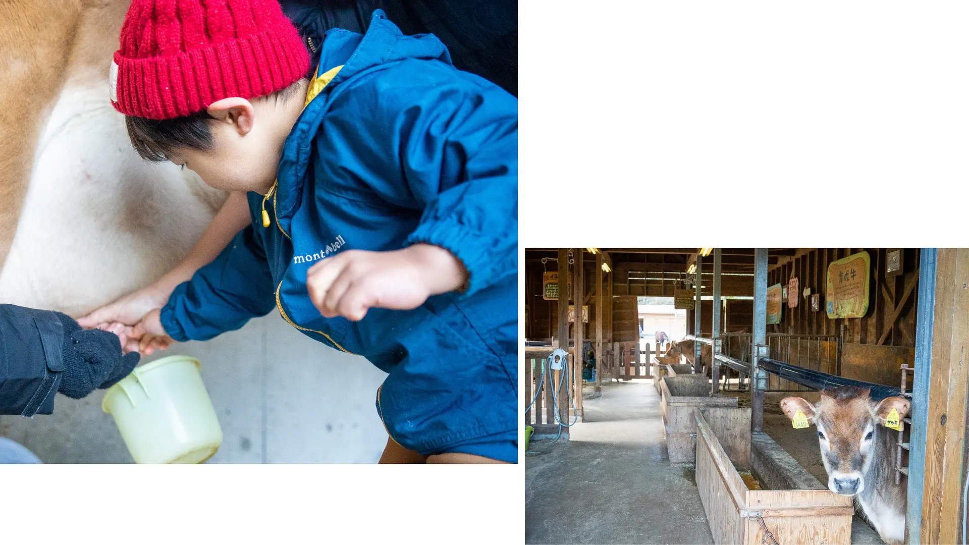 乳搾りの間は、とても大人しくて賢い牛さんに協力してもらいながら、3歳児の握力でも上手に搾ることができました。