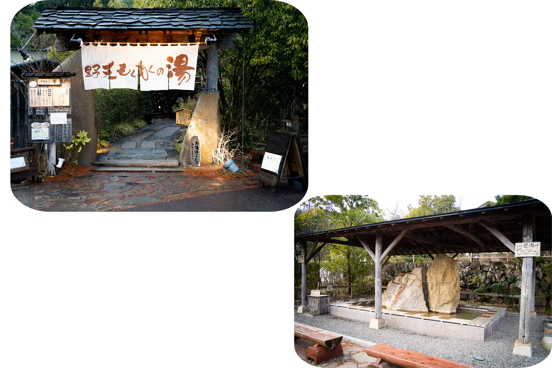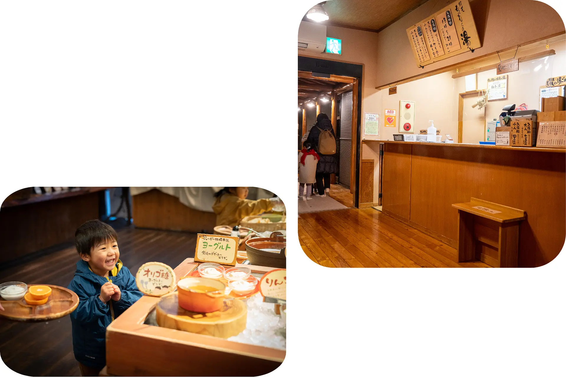 OKAERiビレッジの宿泊時には、宿泊者価格(大人420円、小人260円)で温泉に入ることができます。