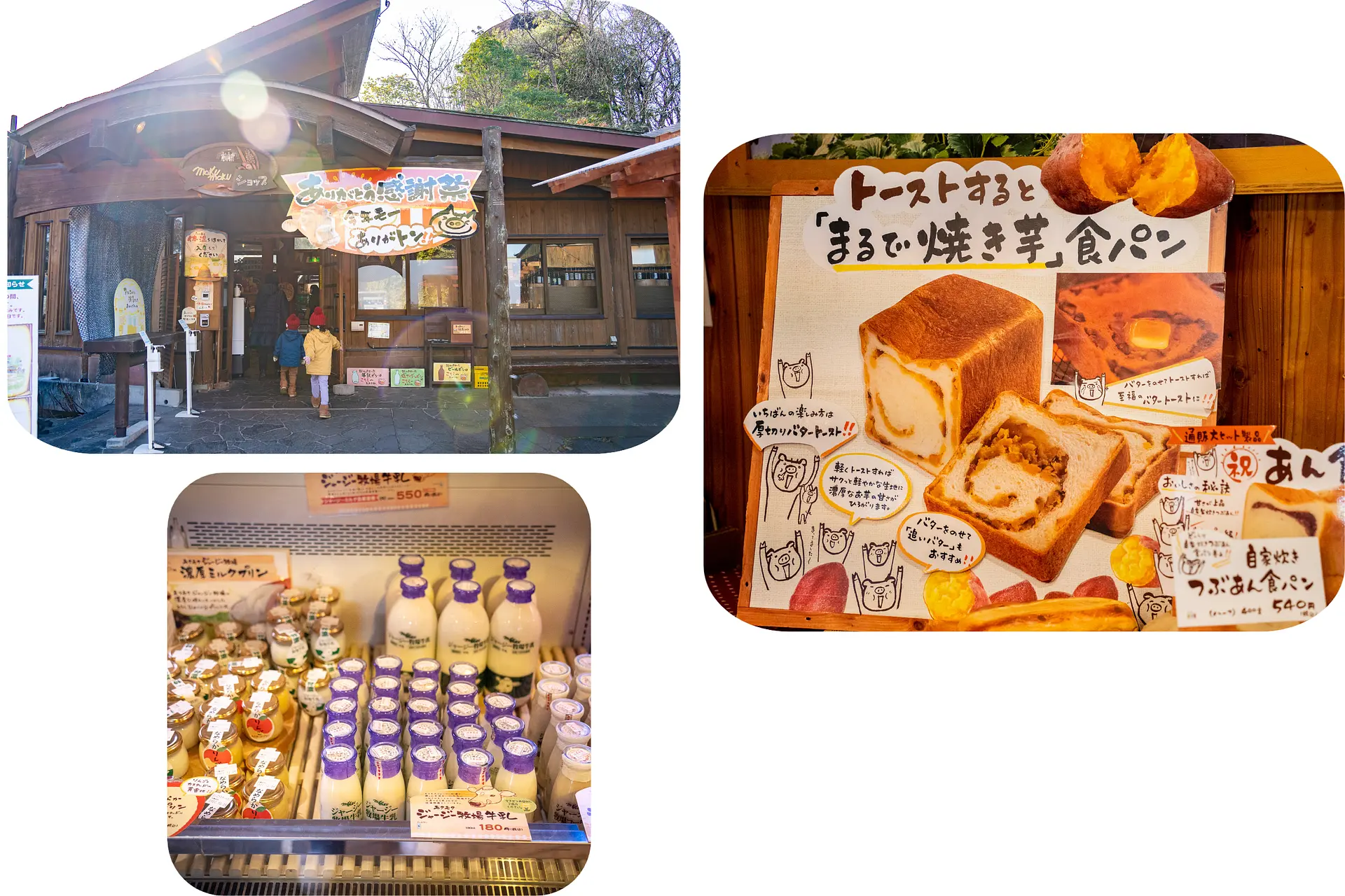 店内にはウインナーやパン、牛乳などのモクモク自慢の商品がズラリ。