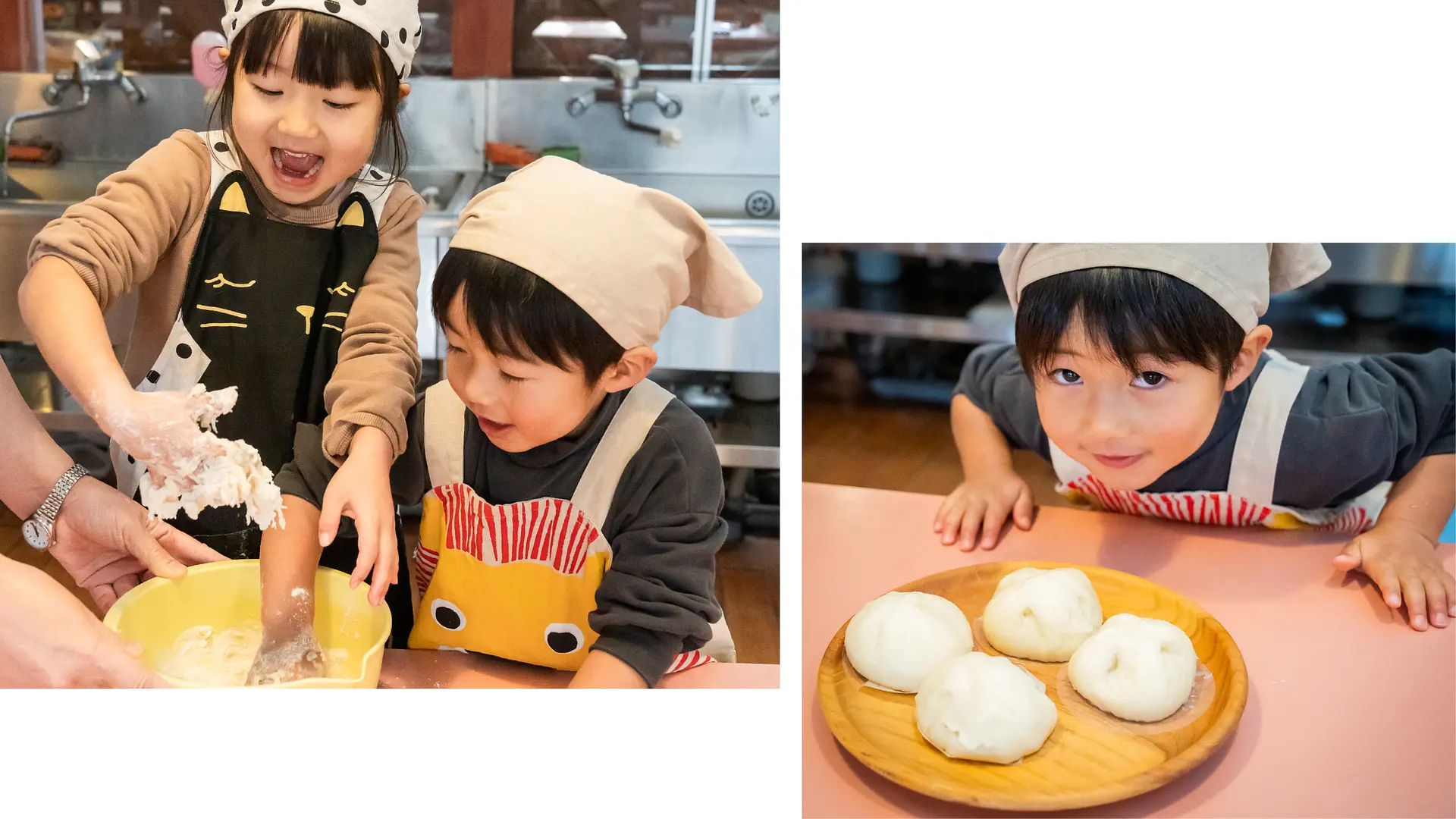 豚まん教室は、国産小麦を使った、皮やジューシーなあんから自分たちで作る教室。