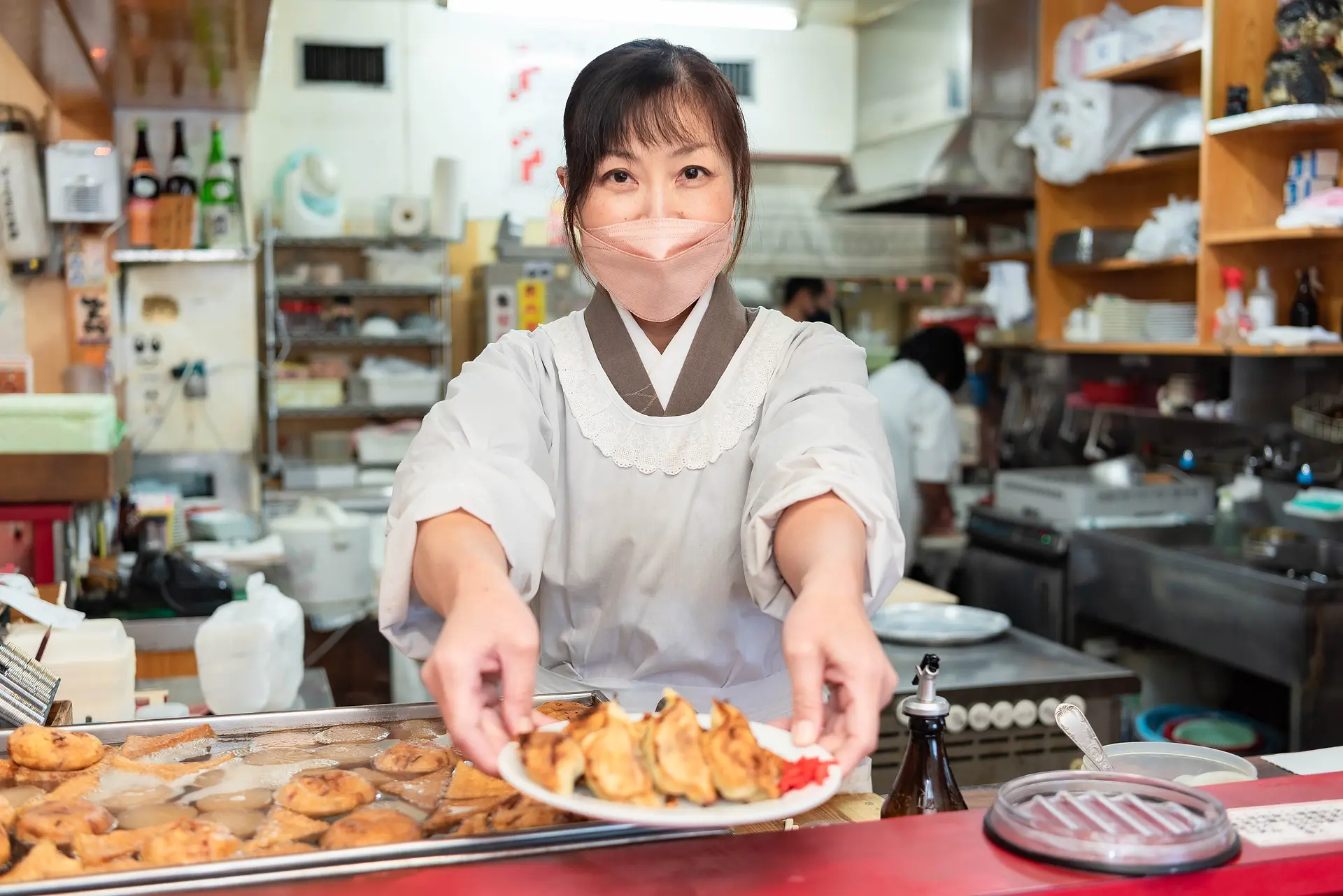メニューの多くがテイクアウトもできるため、キッチンは常にフル回転。そんなキッチンの先頭に立つのが、女将の奥村美佐さん。