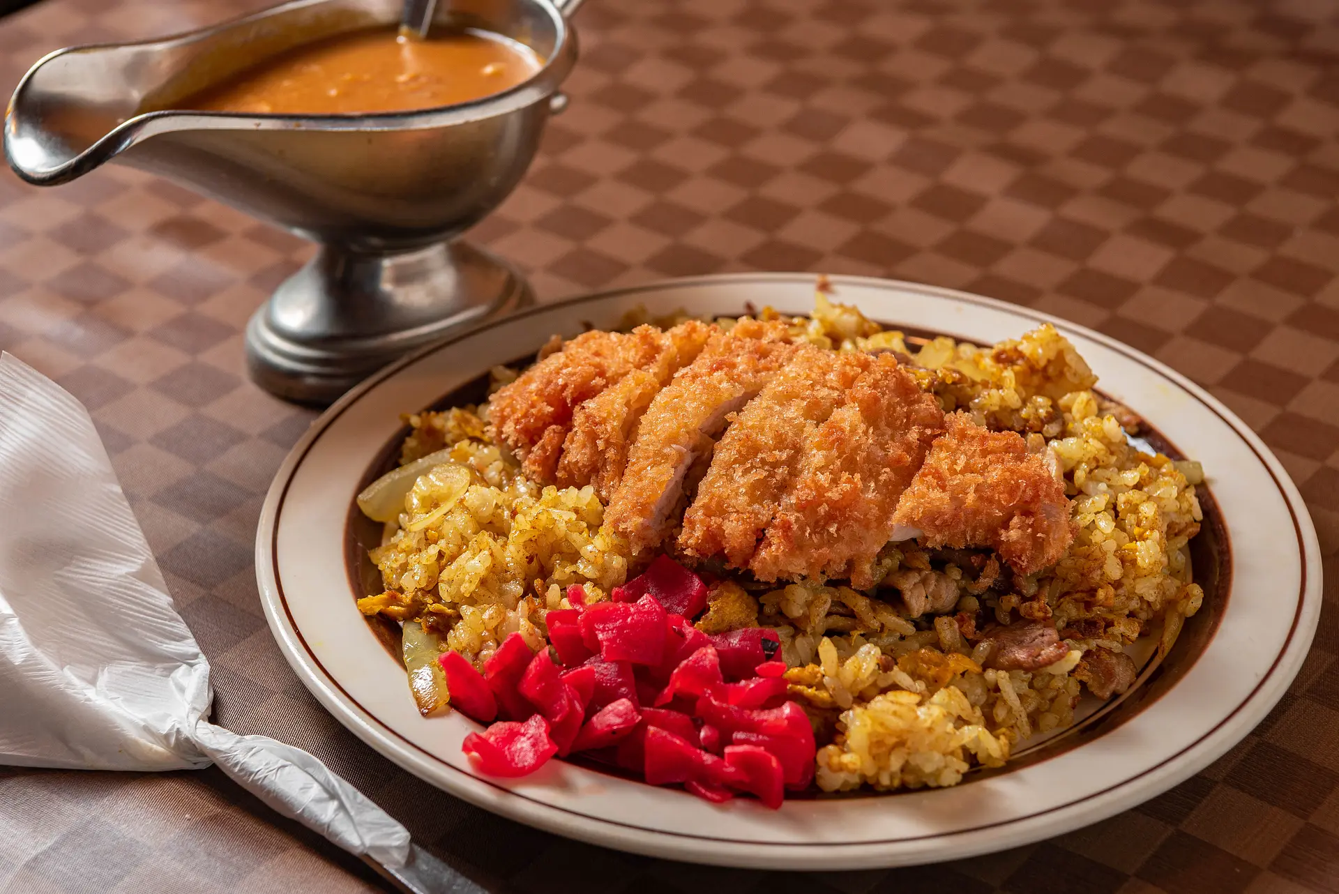 ドライカレーは創業当時より提供されていて、お客さんへのサービスとしてカレールーを付けることを始めたんだそう。いつしかそのサービスが評判を呼び、「止めるに止められなくなってしまった」と、マスターが笑いながら語ってくれました。