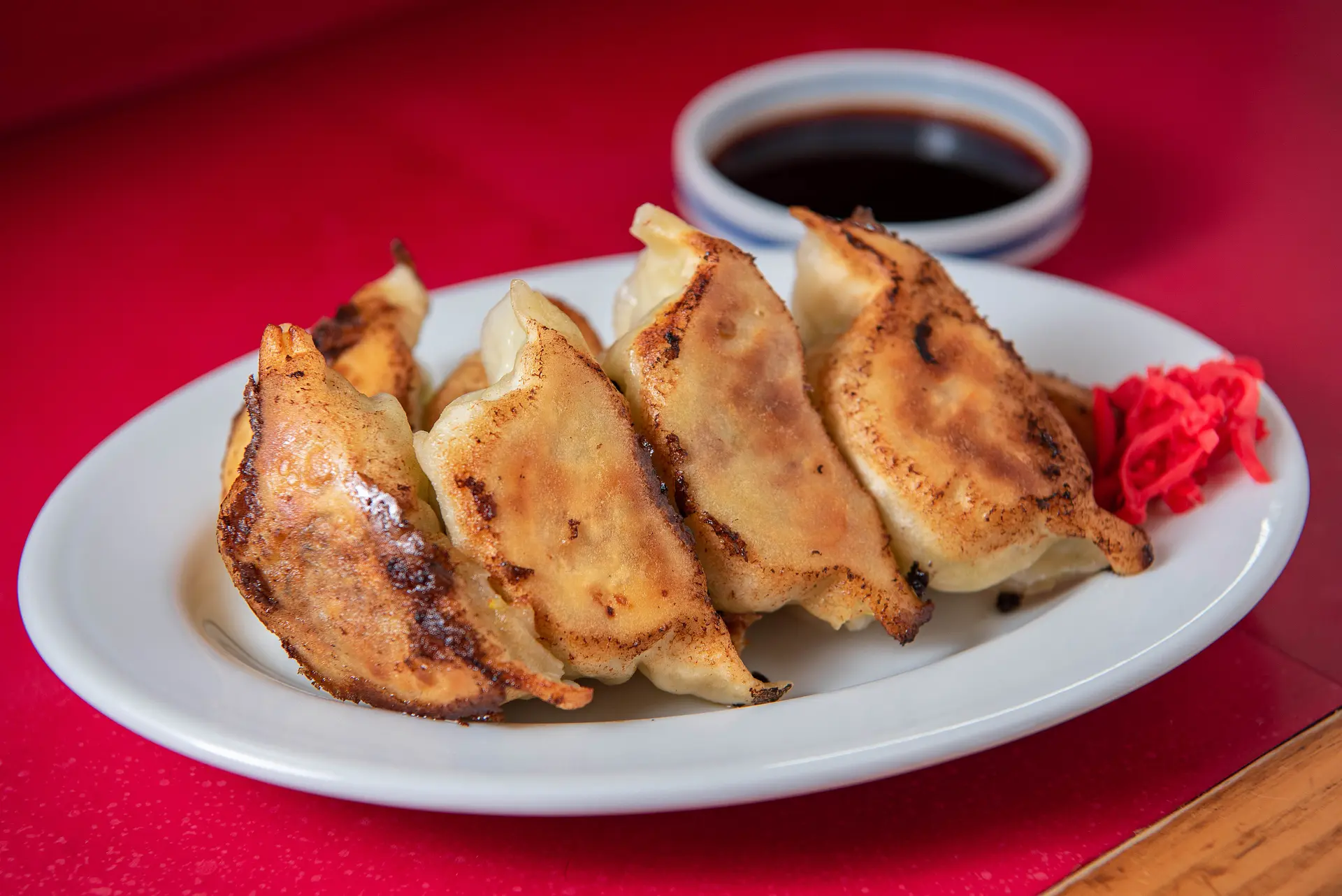 少し厚めの皮はむっちりとして食べ応えがあり、味わいたっぷりでふんわりな肉あんをしっかりと受け止めます。伊勢のたまり醤油をベースに、パリパリの餃子にからみやすいようにと作られた秘伝の特製タレが、餃子にさらに美味しさをプラス。