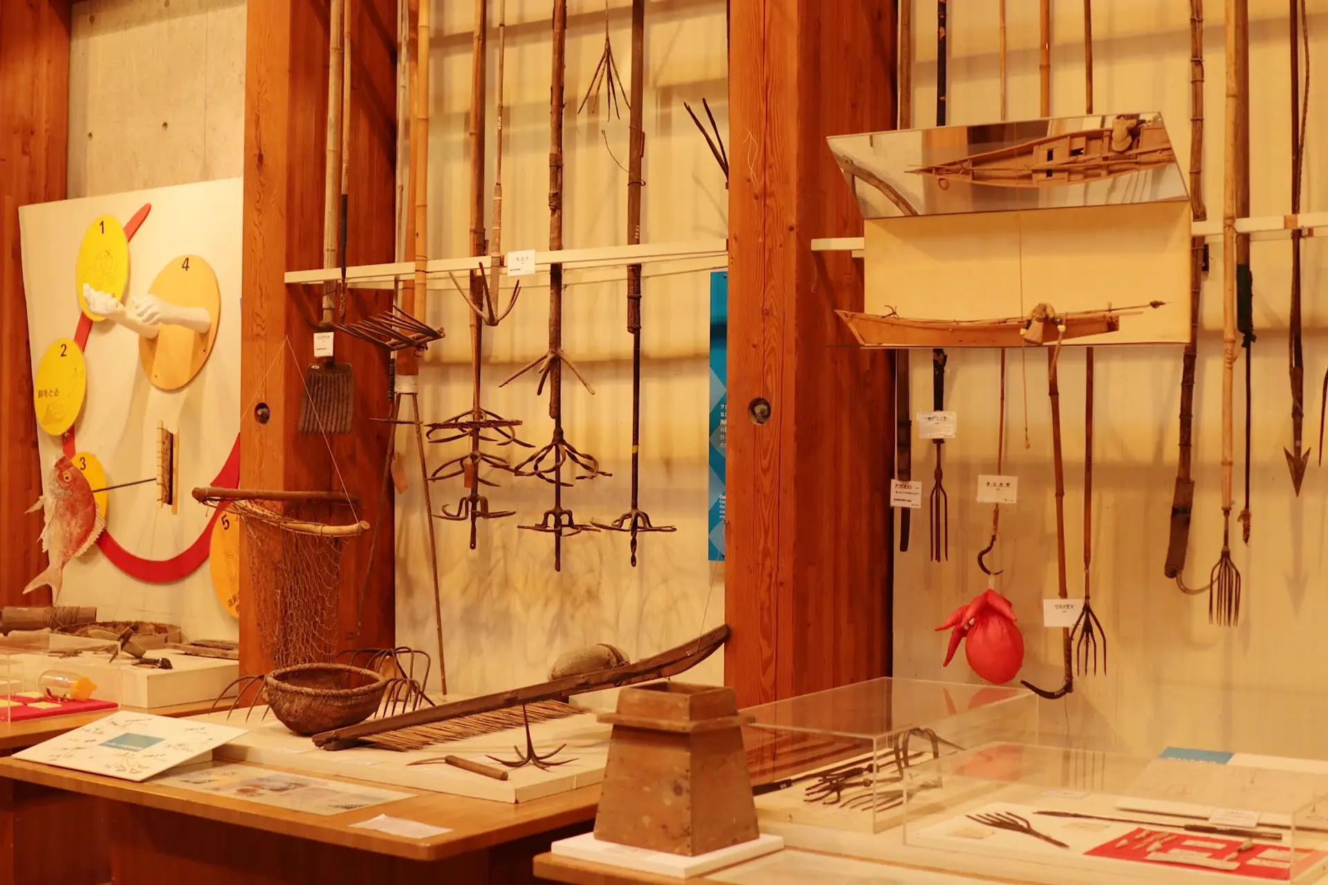 漁具類の展示コーナーも見所の1つで、漁師や海女が実際に利用したものがズラリと並びます。
