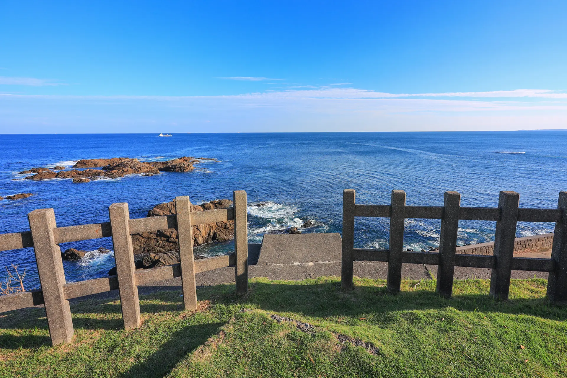 海女のテラスから徒歩数分ほどの距離にあり、広大な芝生広場から海を望めるロケーションなんです♪