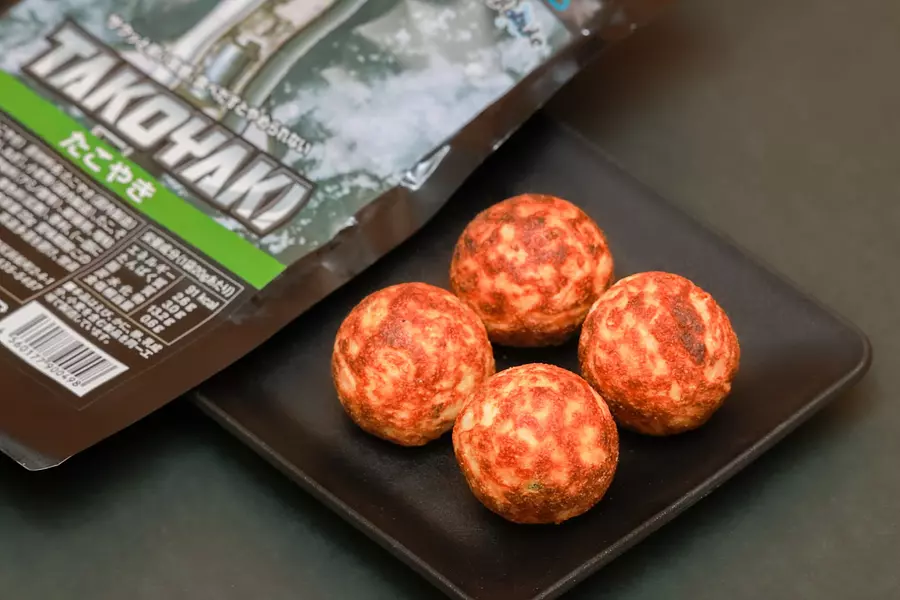 こちらが宇宙食の「たこやき」を開封したもので、こんがりきつね色のたこ焼きが4つ入っていました。