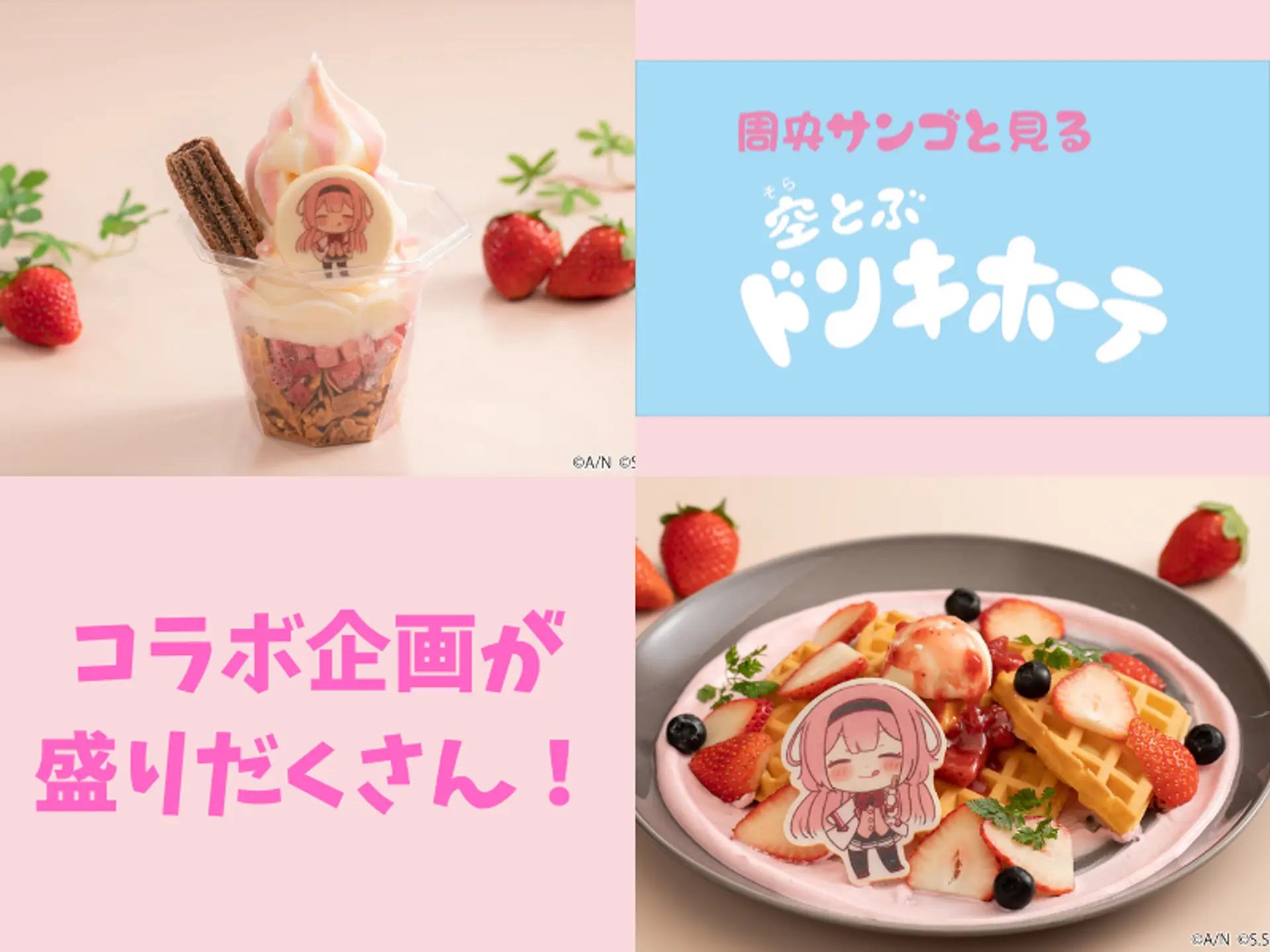 サンゴちゃんが配信で熱く語っていた「周央サンゴゆかりの地」をめぐるスタンプラリーや、サンゴちゃんの熱い副音声が加わった映像作品「周央サンゴと見る空とぶドンキホーテ」の上映、コラボ記念オリジナル描き下ろしイラストをあしらったグッズやメニューの販売などを展開しています。