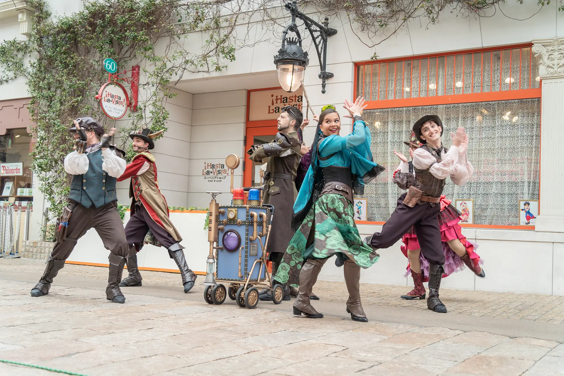 伝説の都の財宝を探して旅するトレジャーハンターの一行が繰り広げるストリートミュージカル。 スチームパンクの衣裳に身を包んだ陽気で楽しい仲間たちが、歌や踊り、ジャグリングを通じて、お客様と一緒に「本当の宝とは何なのか」を探し当てます。