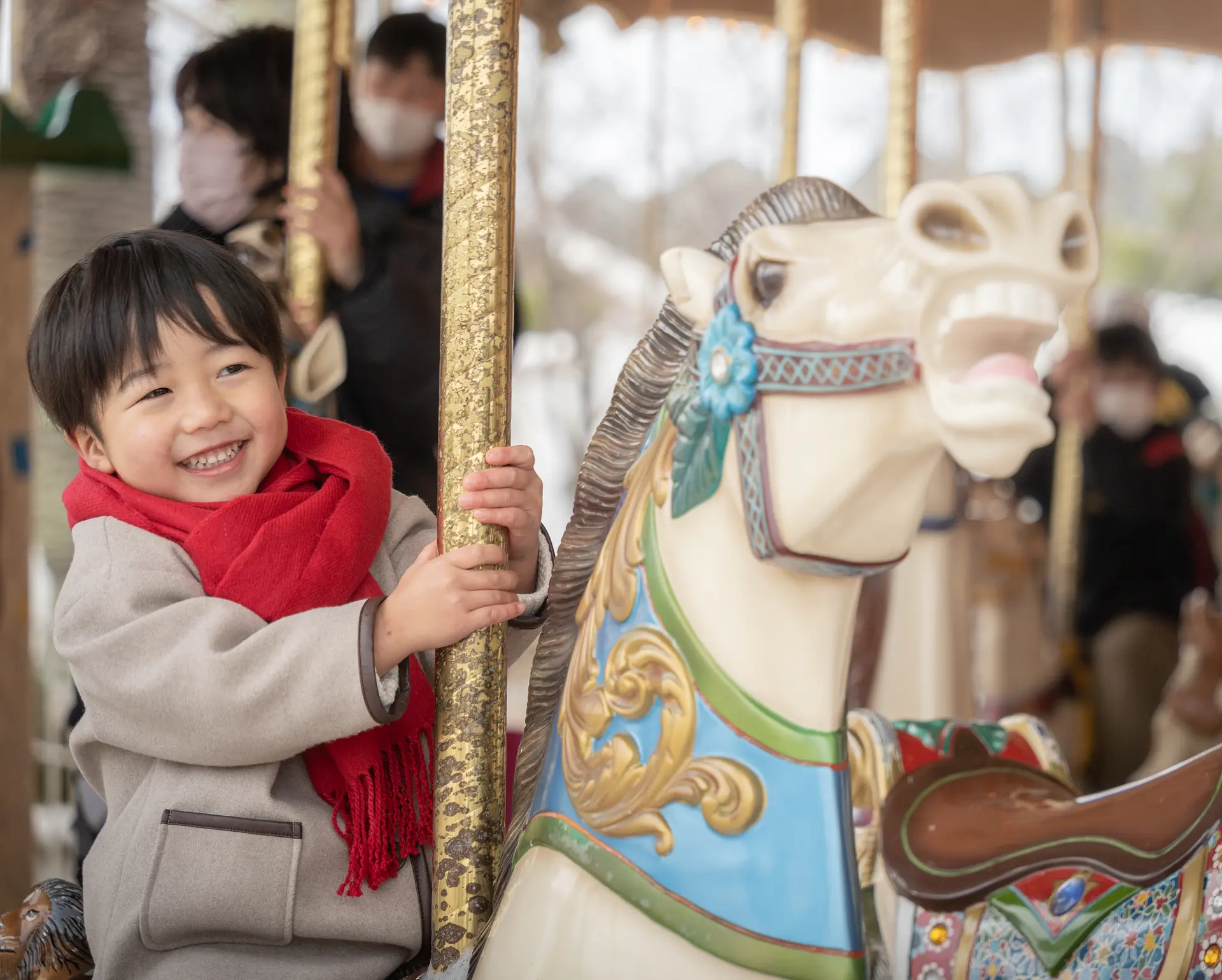 メリーゴーランド「ガウディカルーセル」では志摩スペイン村のオフィシャルスポンサー「森永乳業株式会社」とのコラボイベント「いちご DE ビンゴ」を実施します。