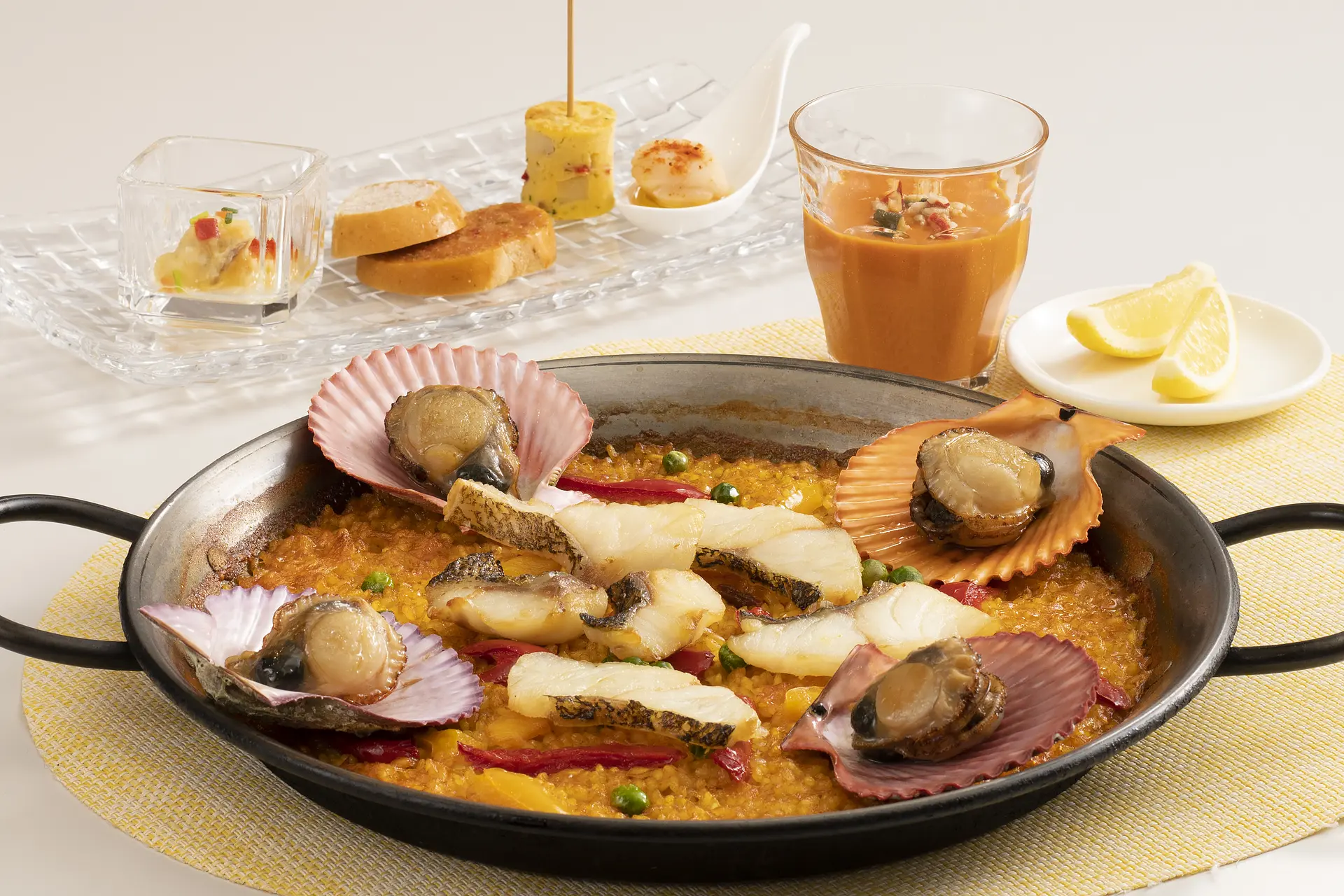 レストラン「アルハンブラ」では、南伊勢町で養殖された高級魚クエを使ったパエリャ「シン・パエリャ伊勢志摩幻の魚クエ~!」が登場。