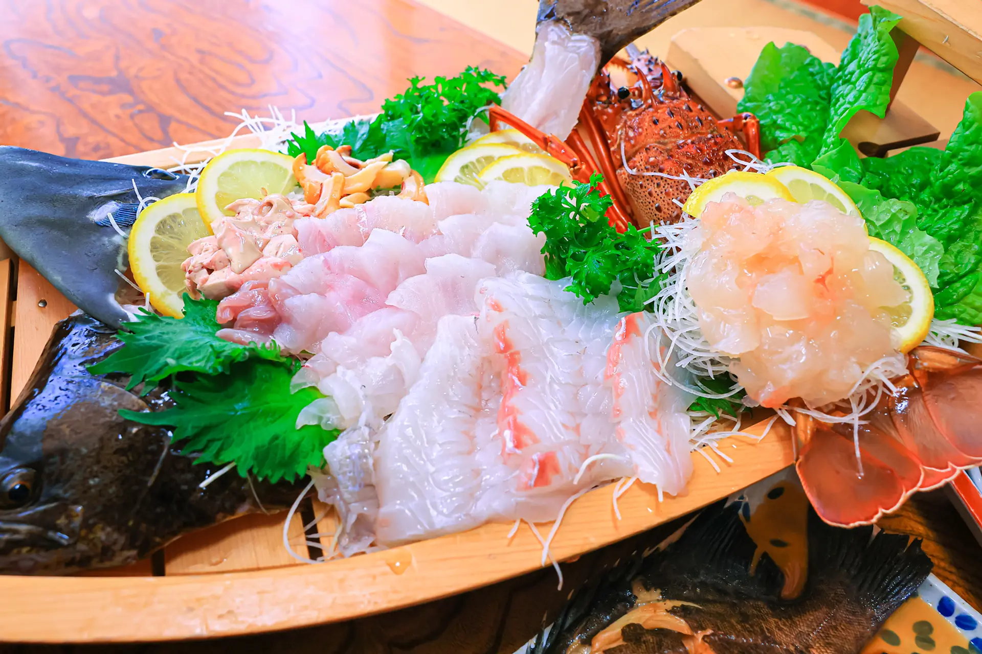 料金プランは1人1万円〜1万5千円(税抜)といくつかありますが、全て1泊2食付きの海鮮コースです。