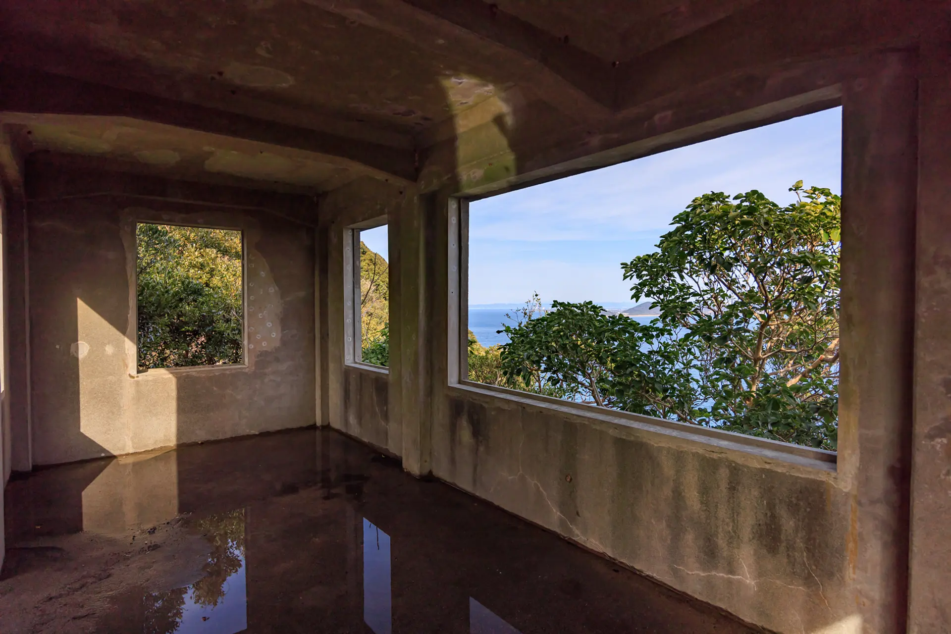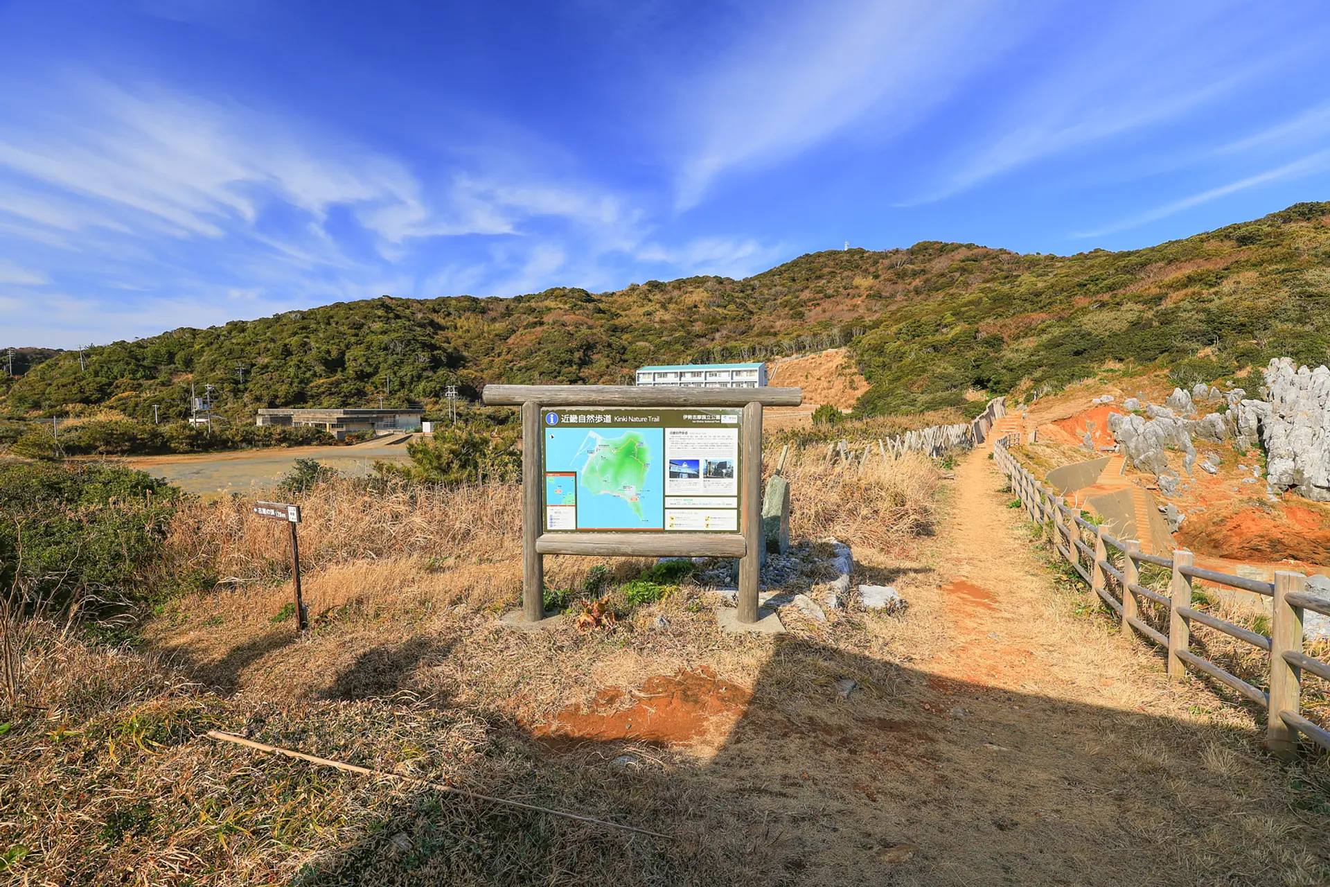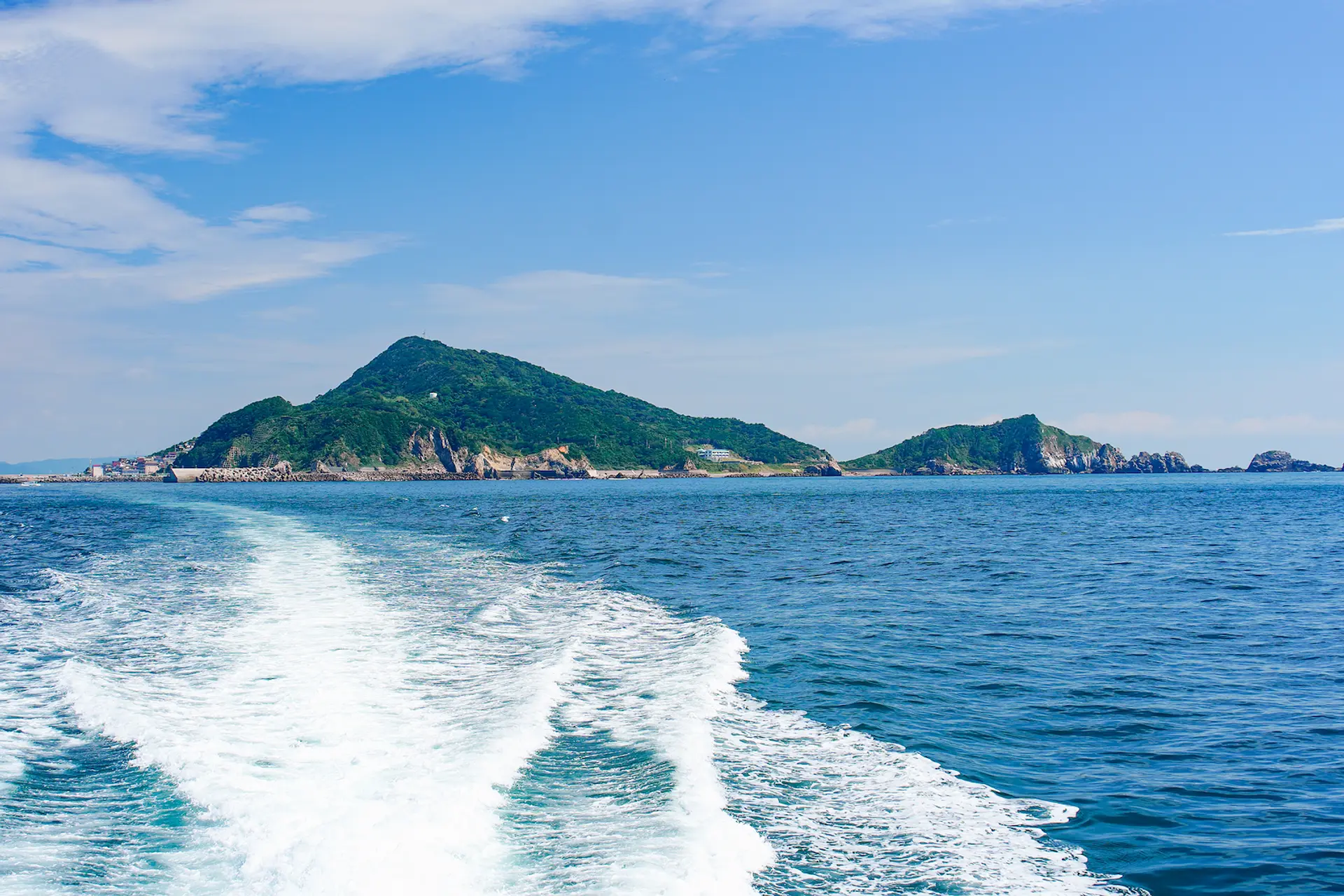 神島には、カルスト地形をはじめとした自然豊かな名所があり、戦時中に建てられた歴史的建造物も見られます。