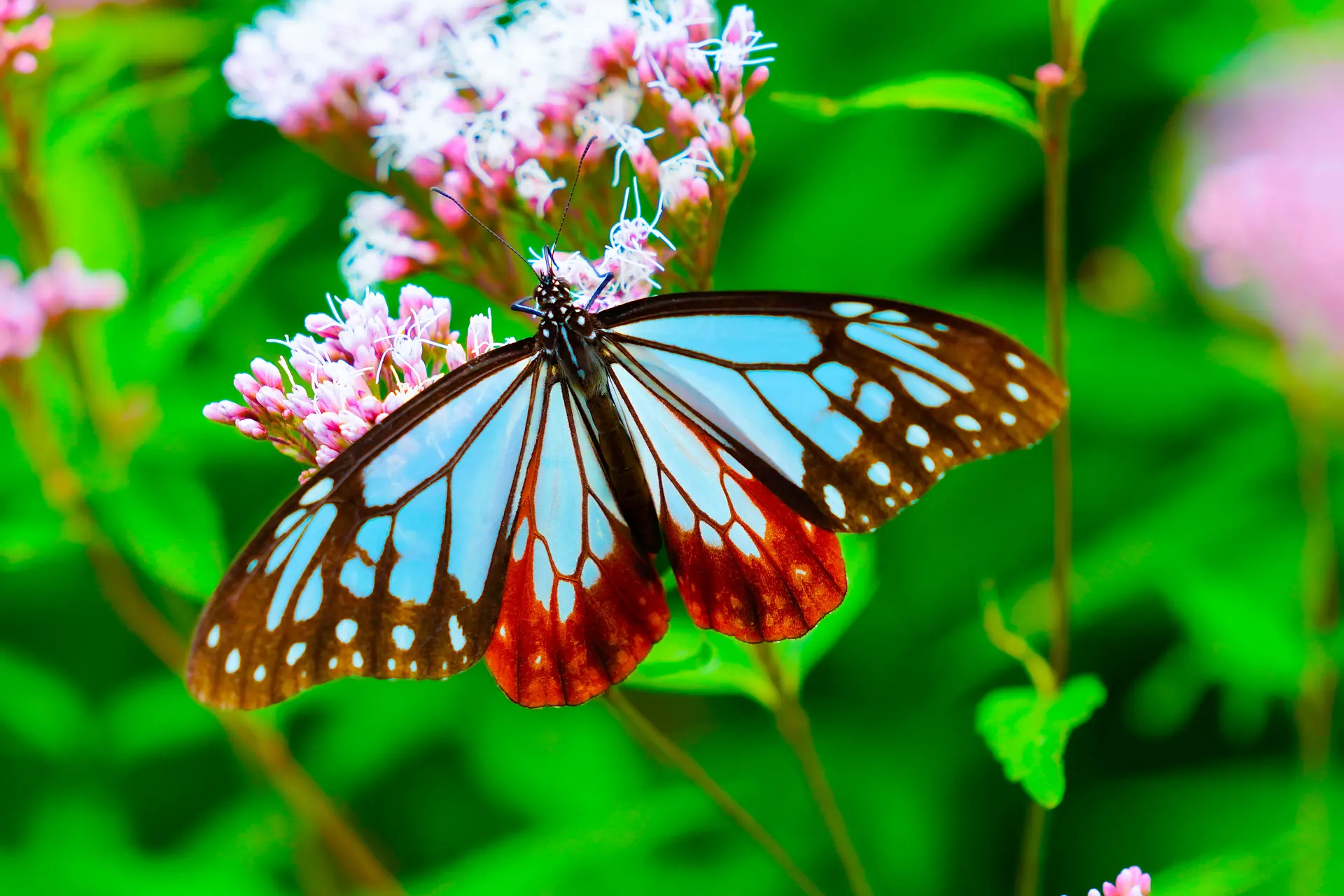 アサギマダラは羽の模様が鮮やかな大型の蝶で、愛好家からは「神島は絶好の観察ポイント」として知られています。