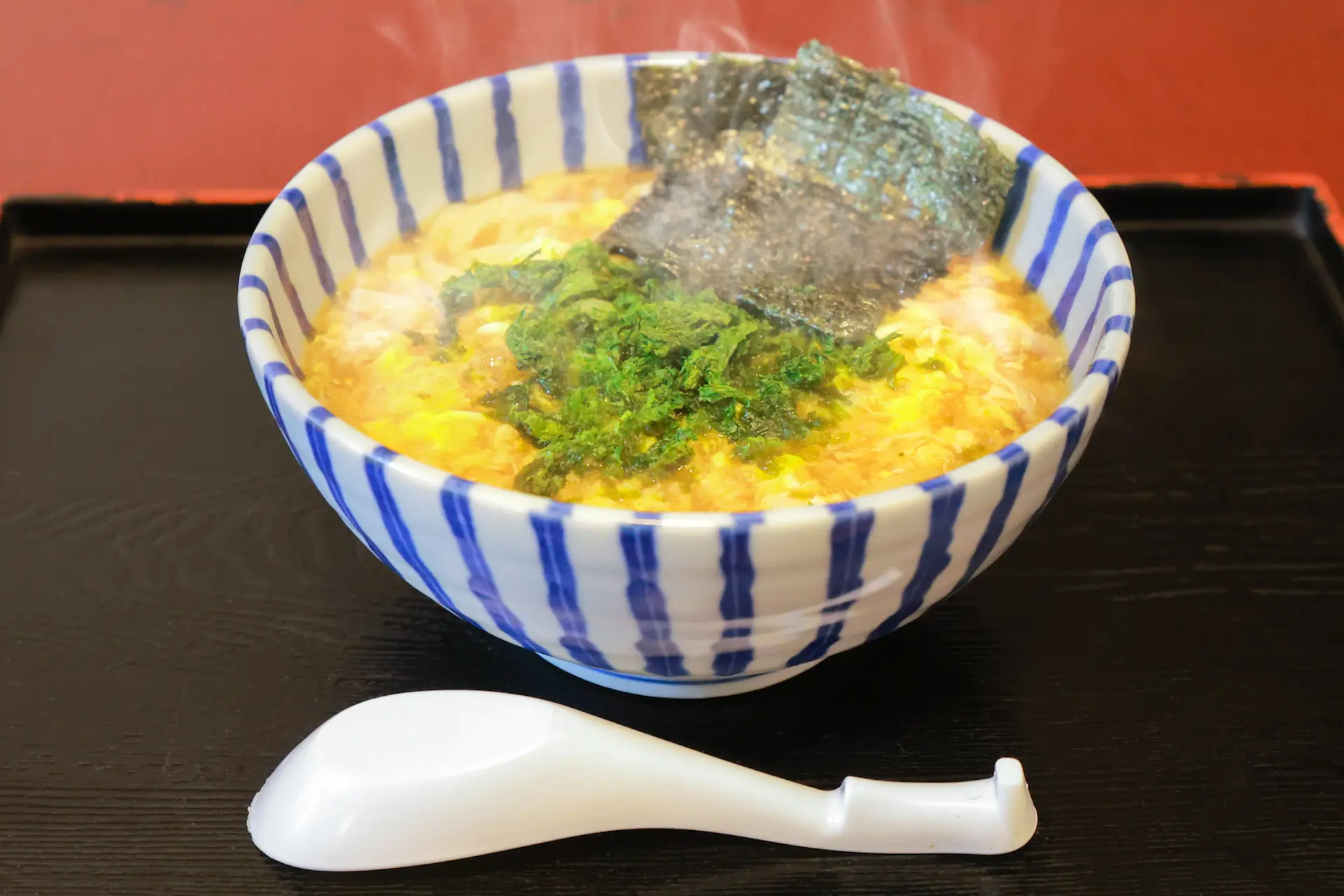取材時は冬場で寒かったので「かき卵あんかけうどん」を注文しました♪