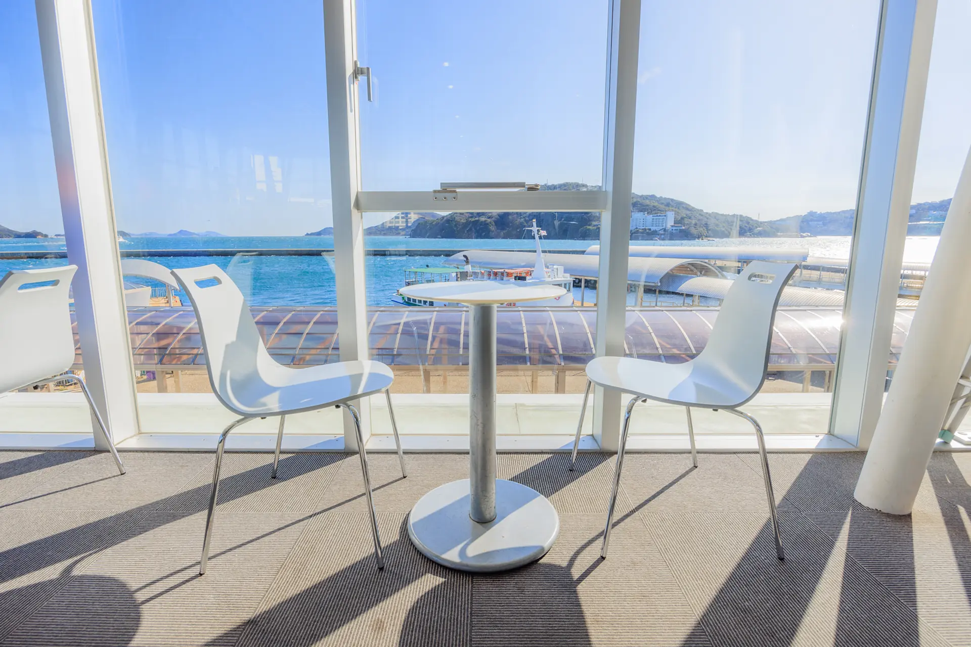1Fの座席は完全屋内で、風や波しぶきが入ってくることはありません。