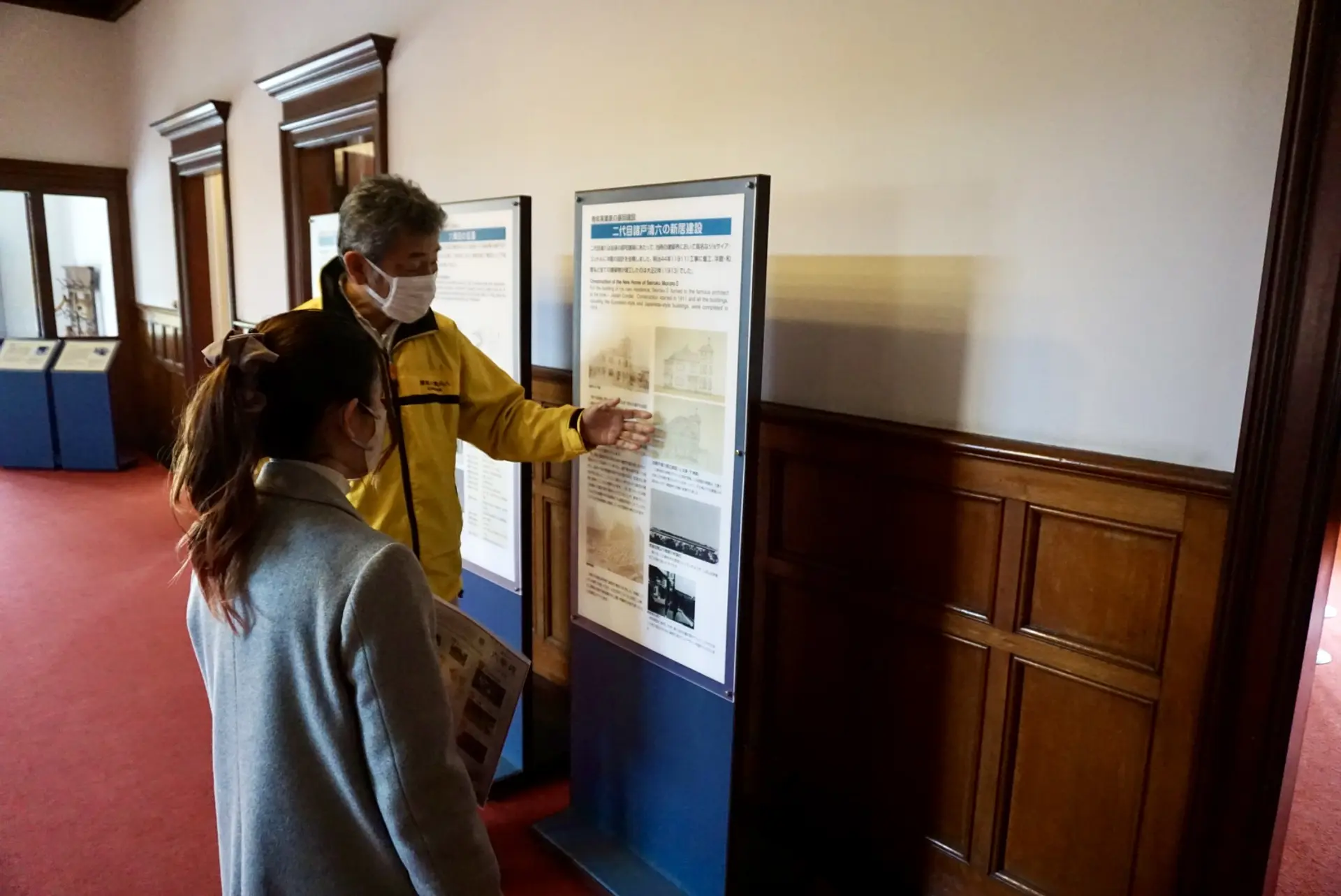 六華苑には、無料でガイドを行なってくださるボランティアの方がいらっしゃるとのことで、ガイドをお願いしました。
