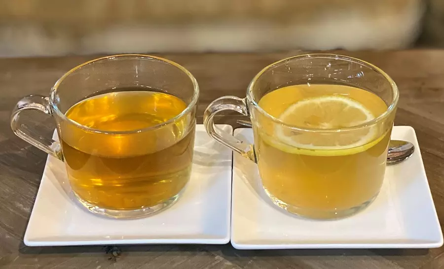 クラフトジンジャーレモネード(右)は期間限定品でレモンがたっぷり入って酸味が効いています。